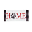 Turn your doorstep into a pet-friendly greeting with this Home Pawprint Sassafras Switch Mat. Against a white wood background, this charming doormat features a "Home" message in red letters with a buffalo check pawprint replacing the O inside matching buffalo check borders. The durable insert is for placement in a Sassafras mat frame or tray, sold separately. Swap mats seasonally to keep things fresh and fun. The charming design is heat sublimated onto the polyester and rubber insert. Suitable for indoor and outdoor use, the floor mat can also be used on its own as a stair tread or small floor mat. It is mildew resistant and features an anti-slip backing. Spot clean with soap and warm water or hose down. For best results, display your mat in a covered or sheltered area to prevent fading.