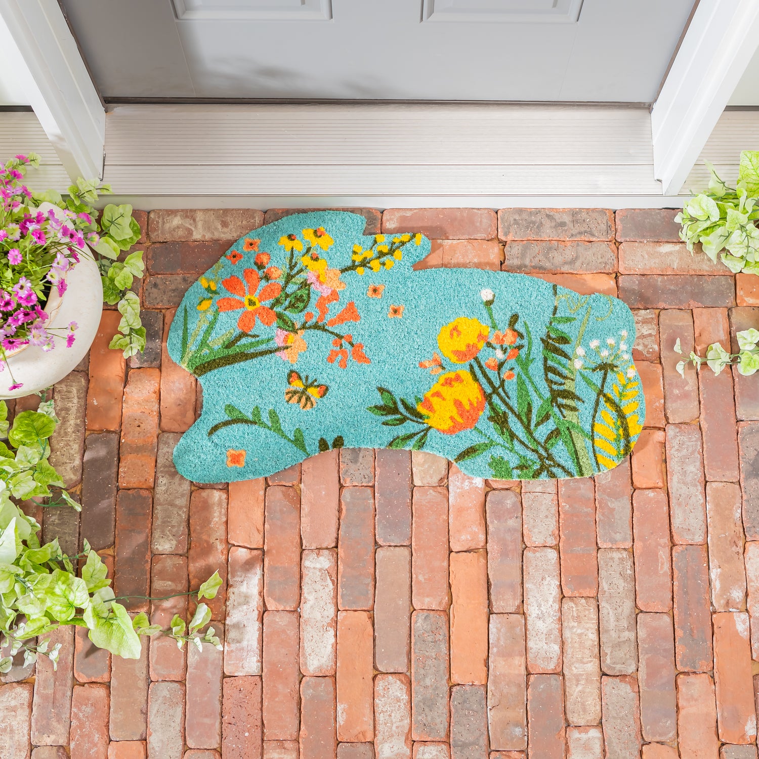 Bunny Blooms Floral Shaped Coir Mat