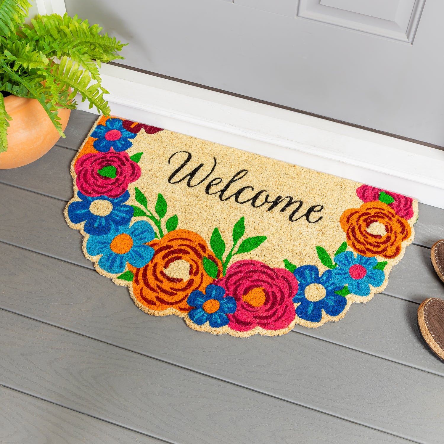 Sweep guests off their feet with our beautifully made coir mats! Made with vibrant pops of color that are perfect for the season, this mat will put pep in anyone's step. Crafted from coco husk fiber, the eye-catching mat is natural and eco-friendly. Ideal for high-traffic areas, the mat traps dirt and debris to prevent messes from being tracked into homes. Designs are printed directly on the mats with fade-resistant dyes. Since the mat is crafted from natural coir, some shedding is to be expected. Shake off excess fibers or use a soft brush to gently sweep.