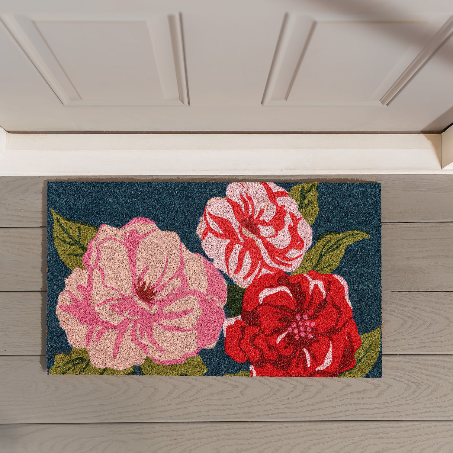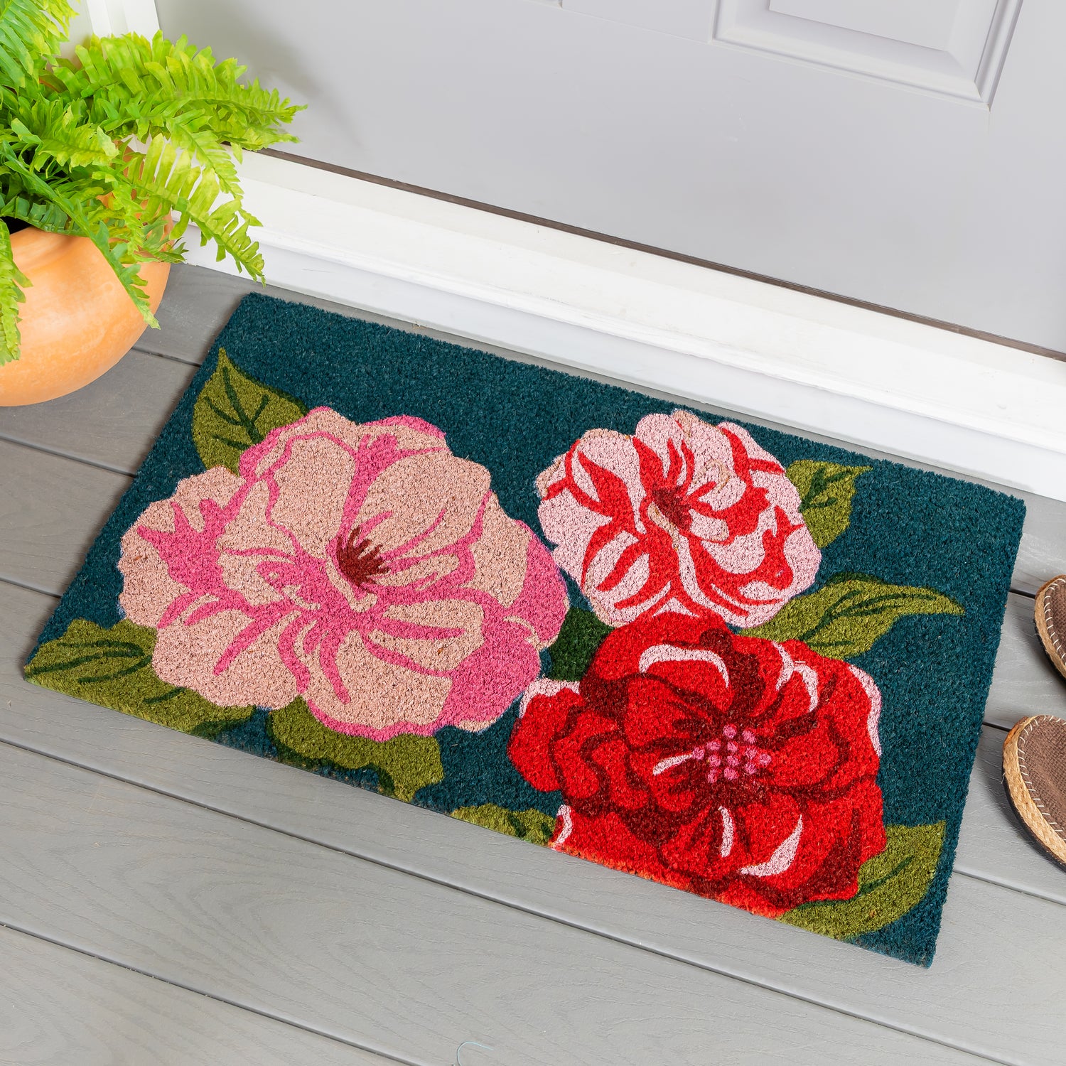Sweep guests off their feet with our beautifully made coir mats! Made with vibrant pops of color that are perfect for the season, this mat will put pep in anyone's step. Crafted from coco husk fiber, the eye-catching mat is natural and eco-friendly. Ideal for high-traffic areas, the mat traps dirt and debris to prevent messes from being tracked into homes. Designs are printed directly on the mats with fade-resistant dyes. Since the mat is crafted from natural coir, some shedding is to be expected. Shake off excess fibers or use a soft brush to gently sweep.