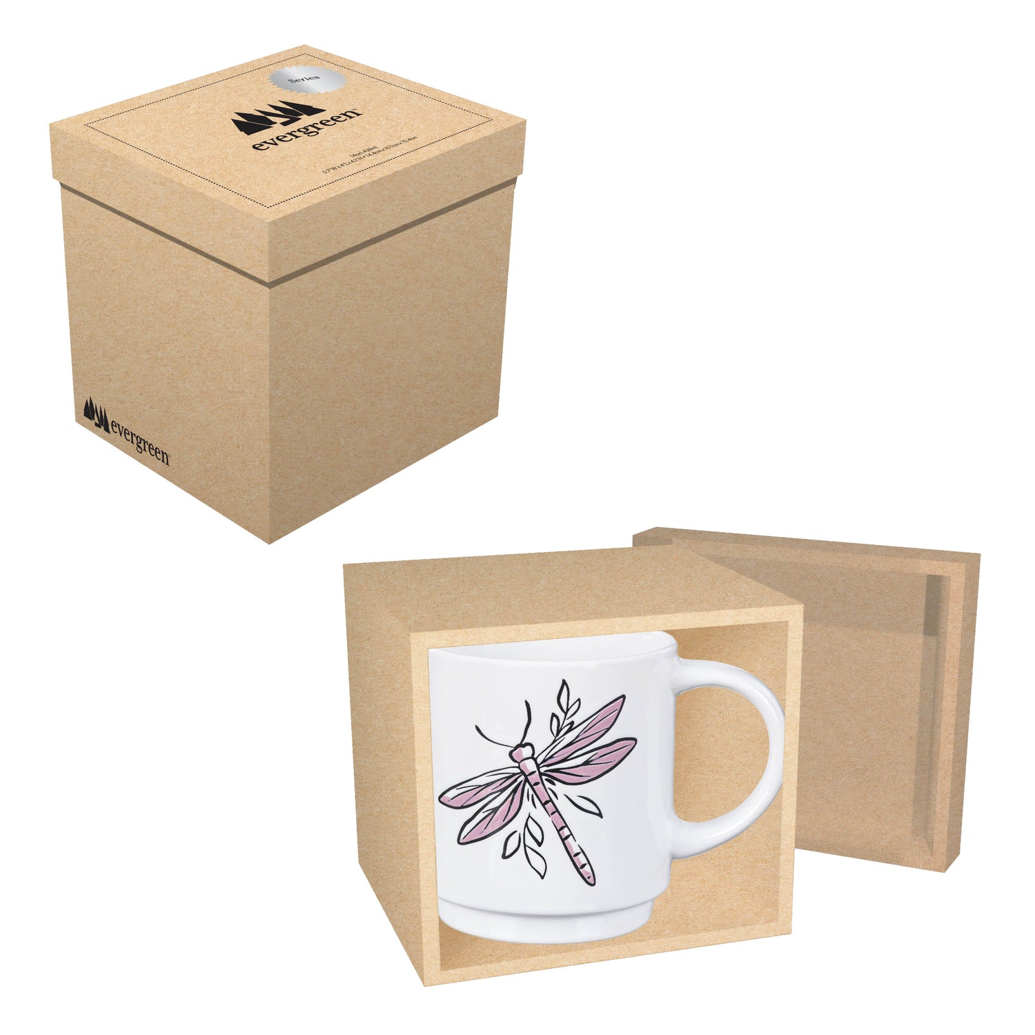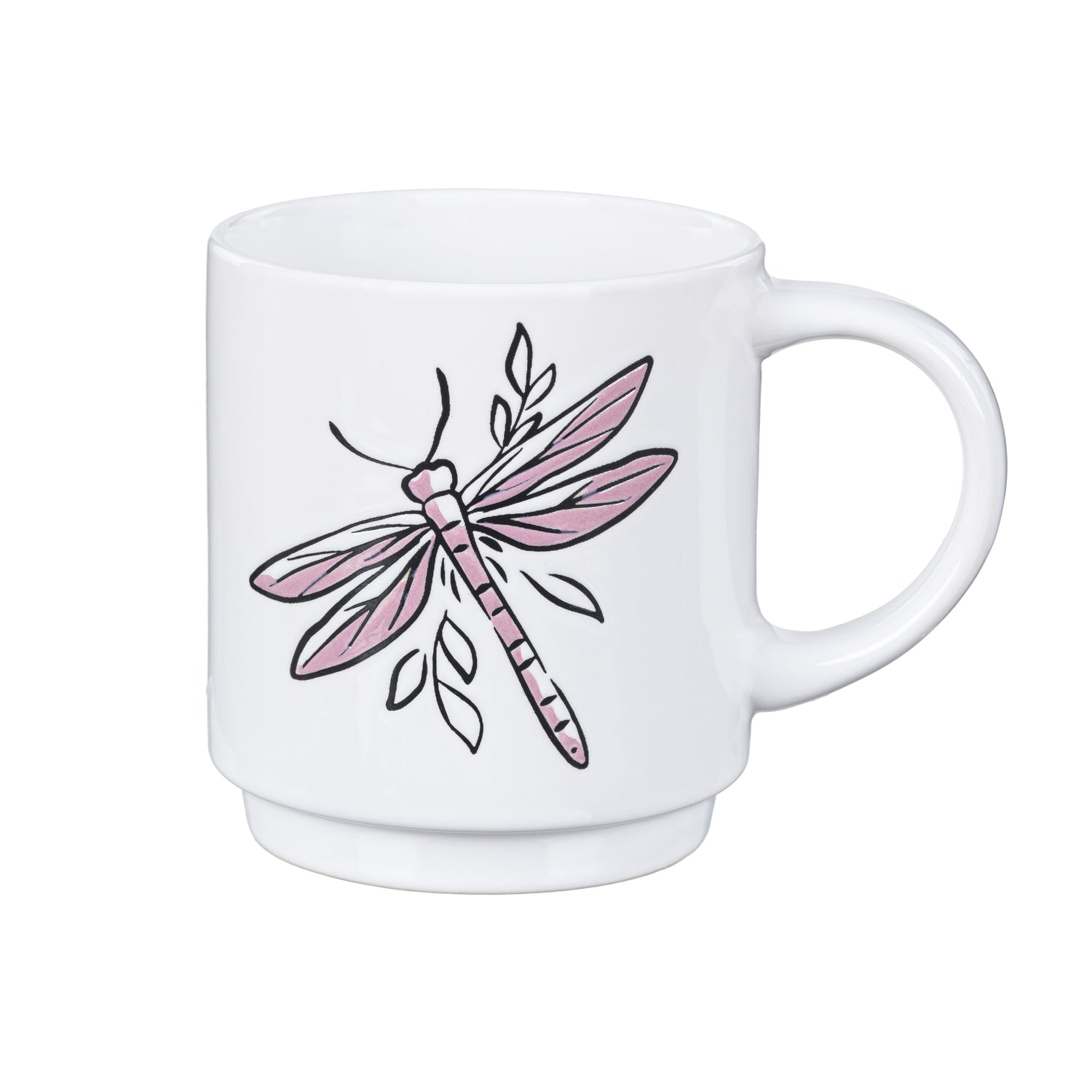 Pollinator Garden Coffee Cup Ceramic Artisanal, Dragonfly Purple, 14oz, Gift Box