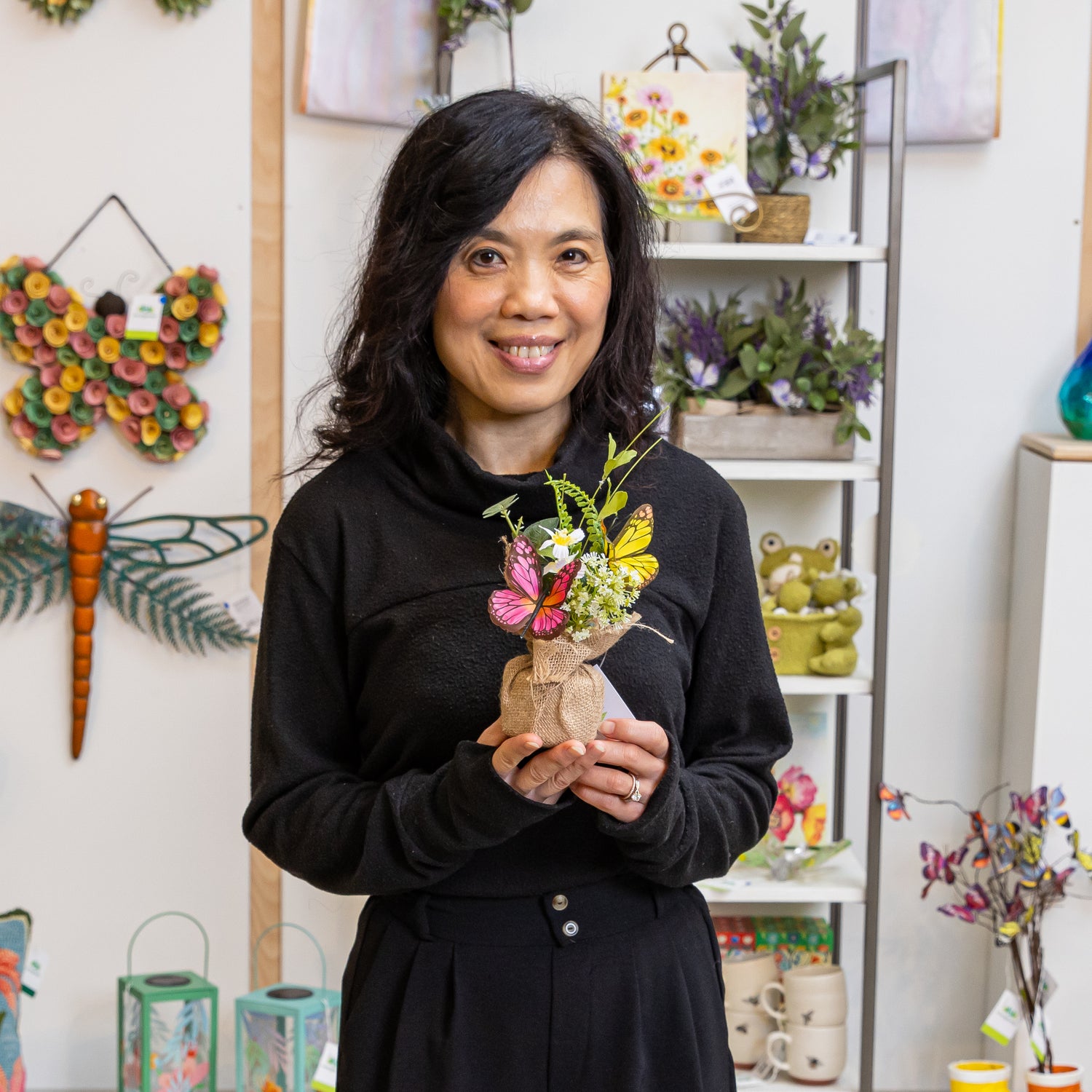 Pollinator Garden Faux Floral Table Decor Butterflies with Burlap Pot, 10"H