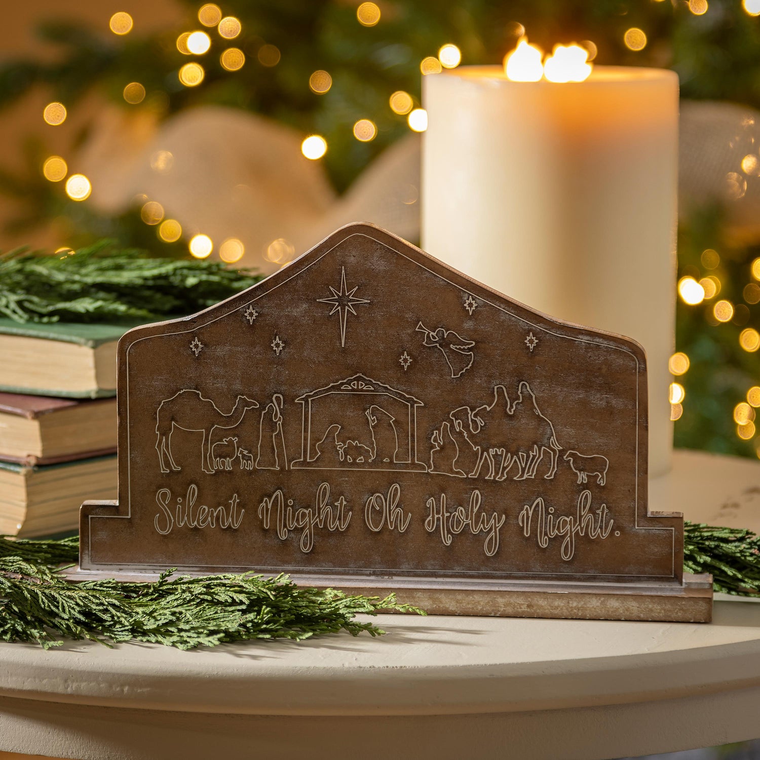 11" Wood Nativity Table Decor, "Silent Night Oh Holy Night"