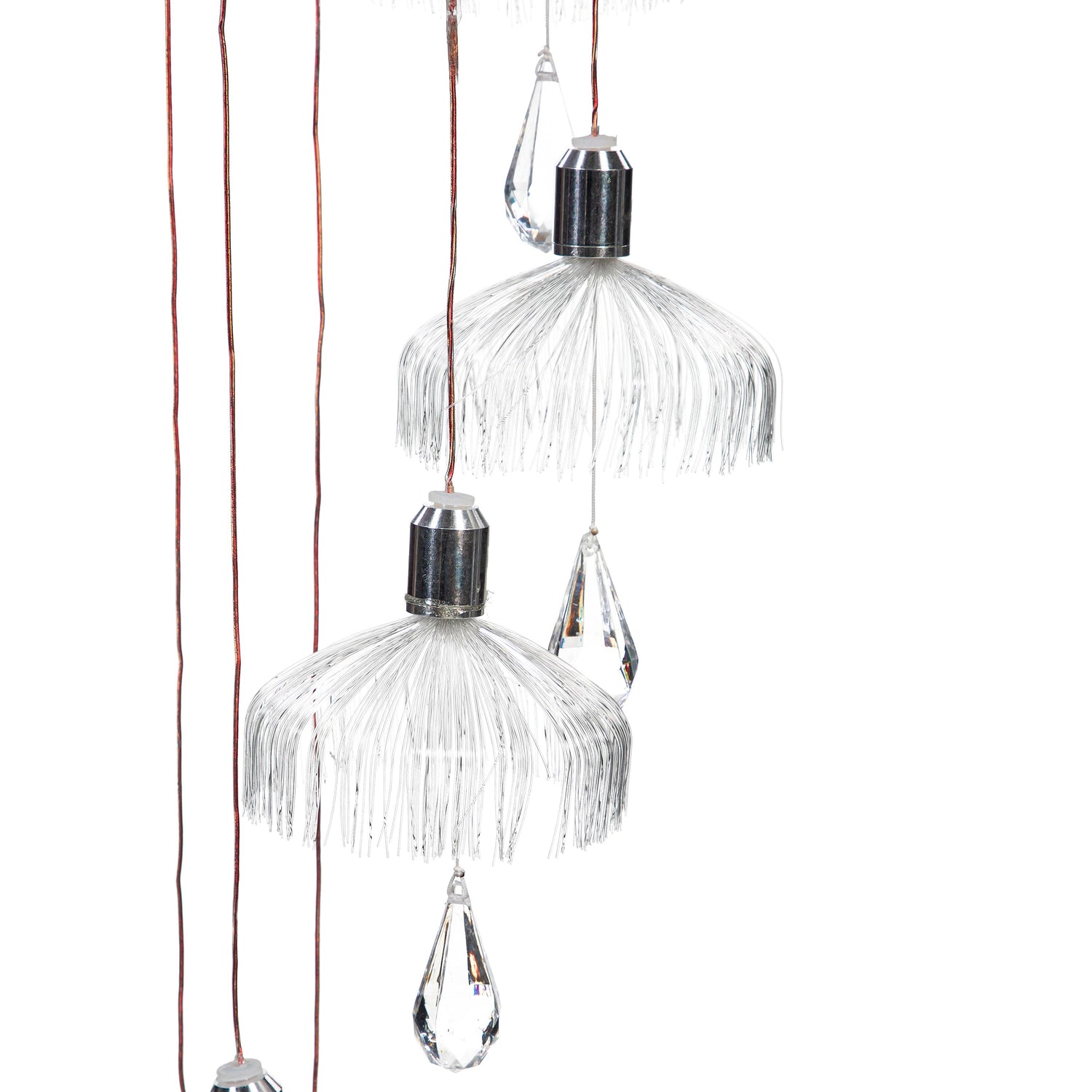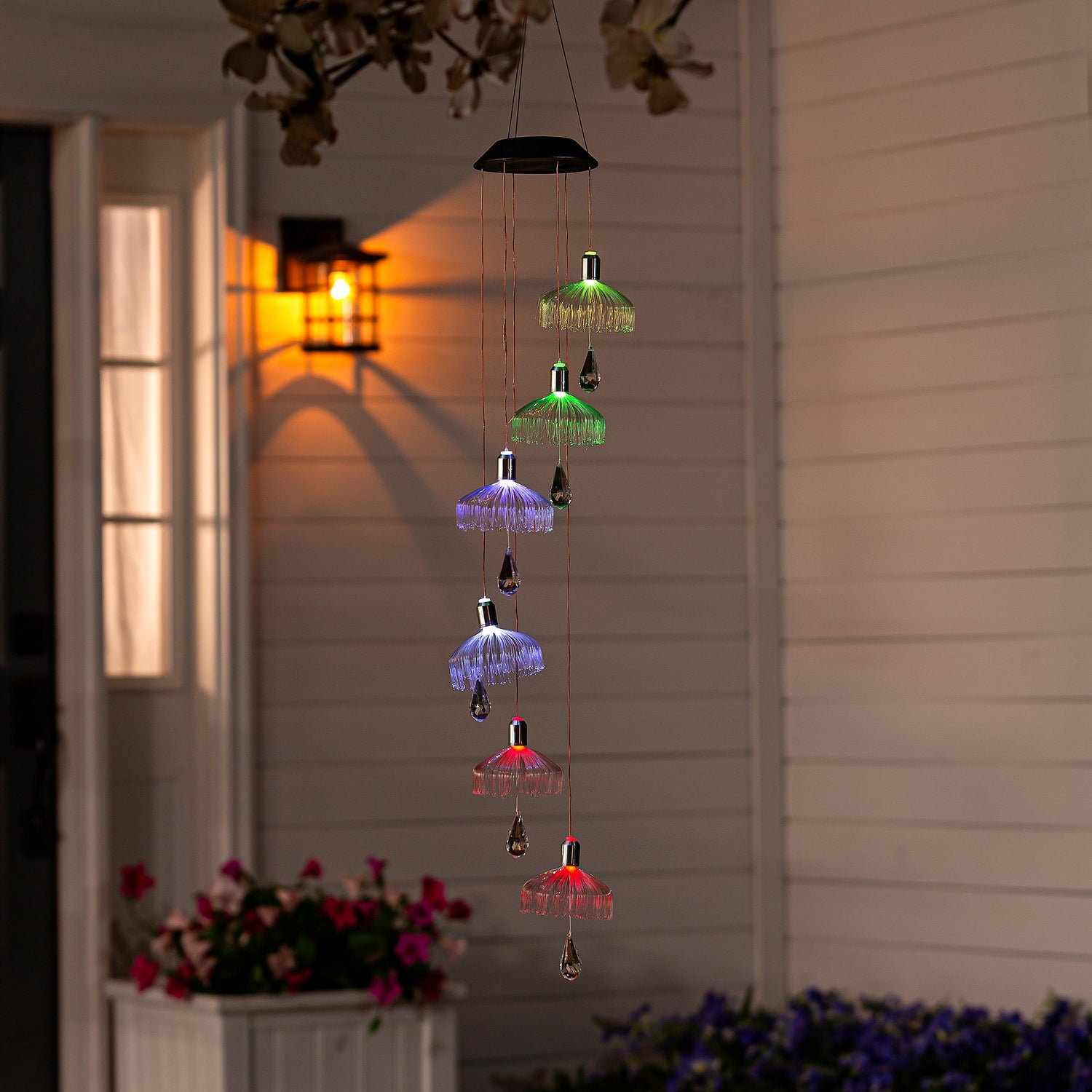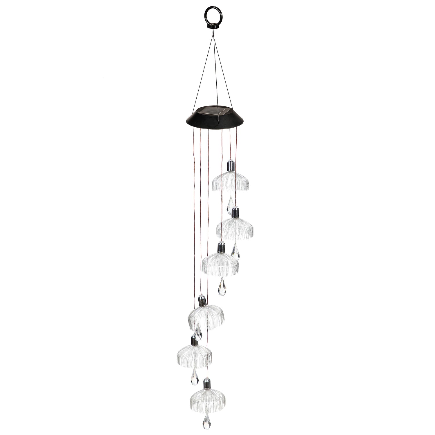 Beautify any space with this charming hanging mobile. This sweet design brings a joyful look to any space with its color changing, bright umbrella accents. Durable construction with high-quality materials ensures it will last season after season. The solar lights glow at night. Perfect for any spot in need of some cheer. Hang it in the garden, yard, or on the porch to show them off. It makes a great gift for anyone looking to update their garden décor. It requires one AAA Ni-MH battery, included and it’s adapter compatible.
