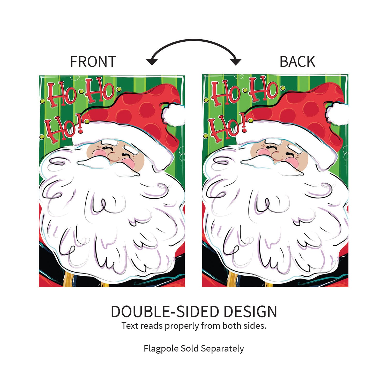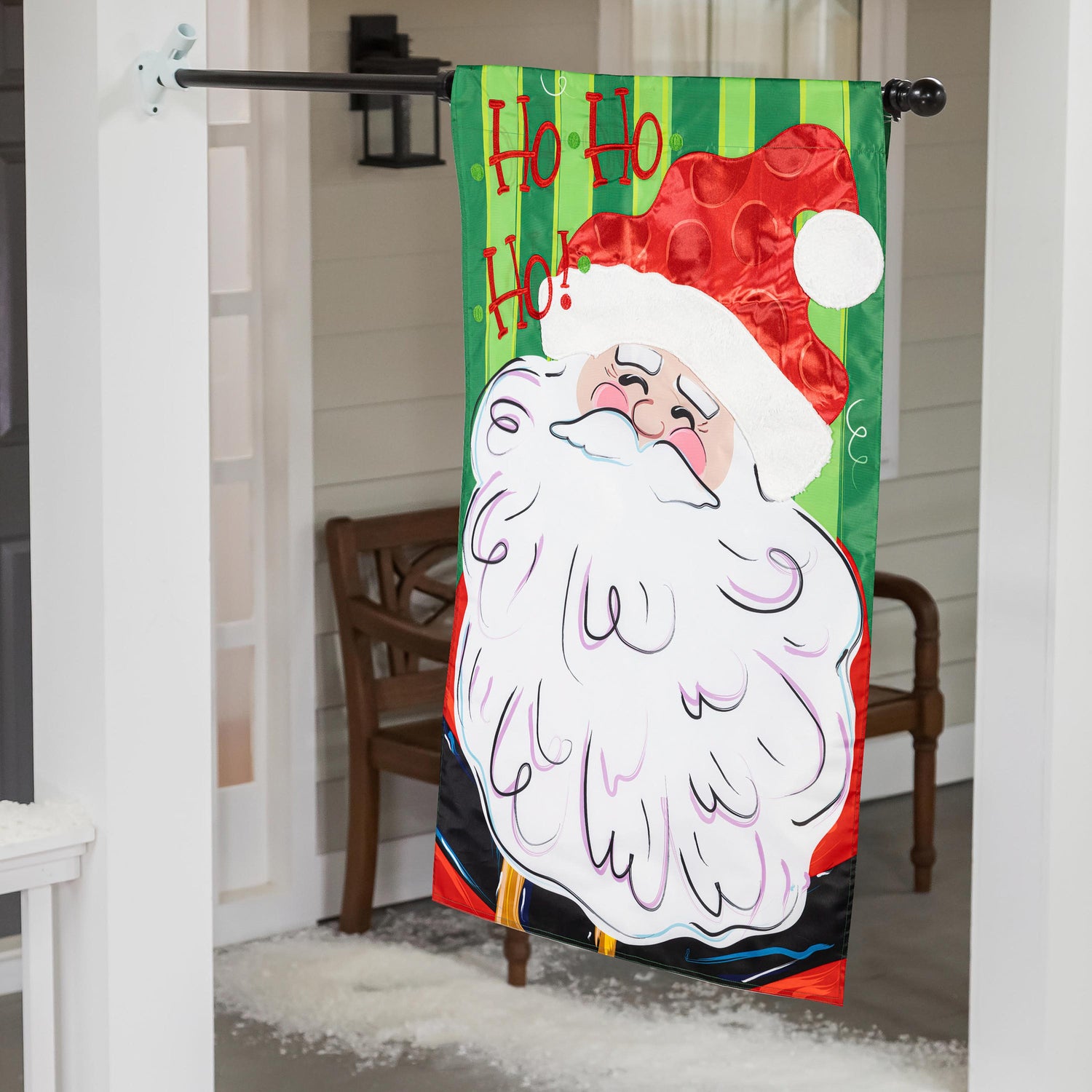 Add magic and wonder to any garden or yard when you hang up this beautiful flag. Featuring Santa Claus in traditional dress, this flag is perfect for the festive season. Each Evergreen applique flag is carefully crafted from multiple layers of 310 denier nylon made from recycled plastic that can withstand a variety of weather conditions. We combine pieces of fade-resistant, strong fabric with tight, detailed stitching to create a dimensional mosaic effect. The soft yet heavyweight material illuminates beautifully in sunlight. Each flag features a sleeve that fits standard flagpoles or stands, sold separately. Due to the nature of the packaging, wrinkling may have occurred. Once item is unfolded and mounted on hardware, the creases will naturally fall out. Spot clean only. Never put in a dryer. When not in use, flags can be hung in a closet or placed in a storage container.