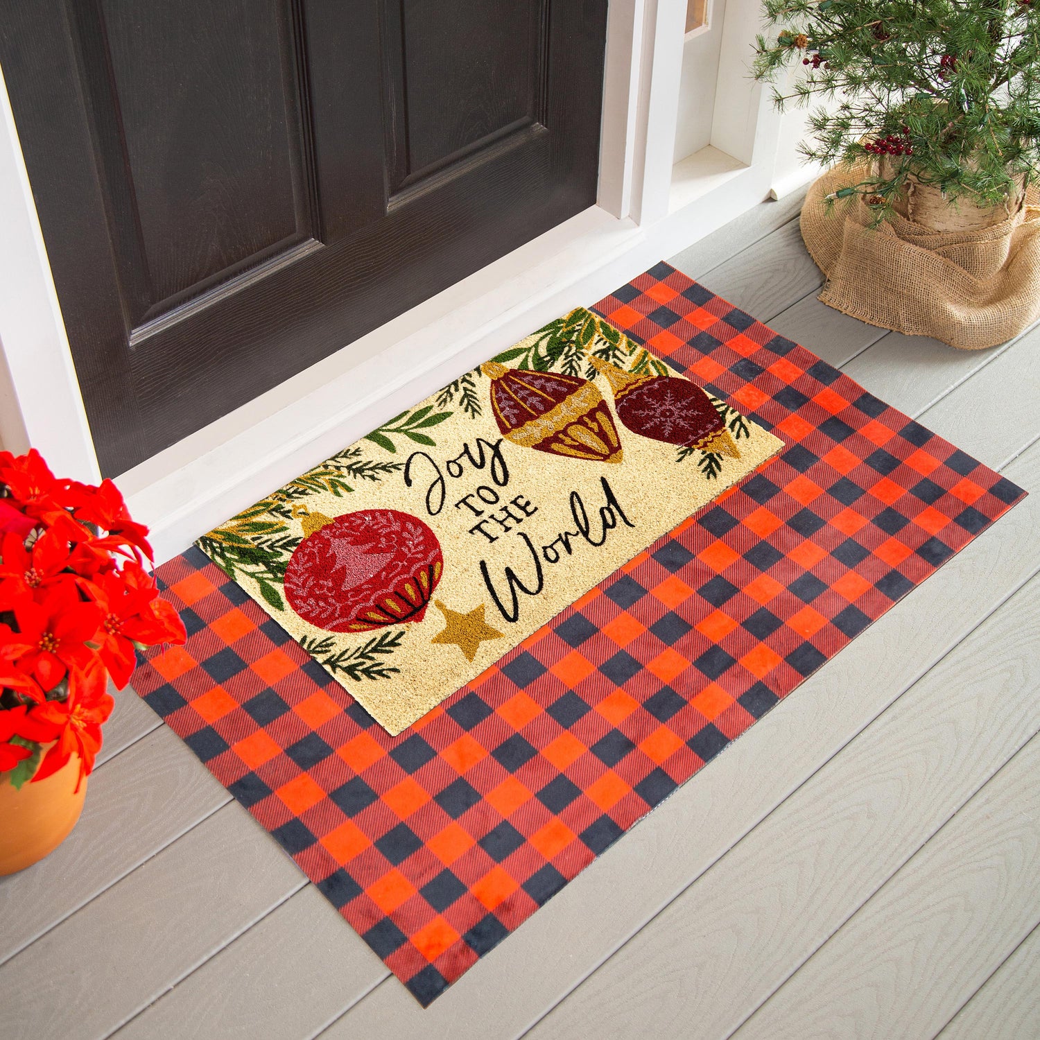 Step into winter style with this coir mat. Perfect for adding an extra charming touch to any entryway, this welcoming design features stunning ornaments hanging from a Christmas tree. Crafted from coco husk fiber, the eye-catching mat is natural and eco-friendly. Ideal for high-traffic areas, the mat traps dirt and debris to prevent messes from being tracked into homes. Designs are printed directly on the mats with fade-resistant dyes. Since the mat is crafted from natural coir, some shedding is to be expected. Shake off excess fibers or use a soft brush to gently sweep.