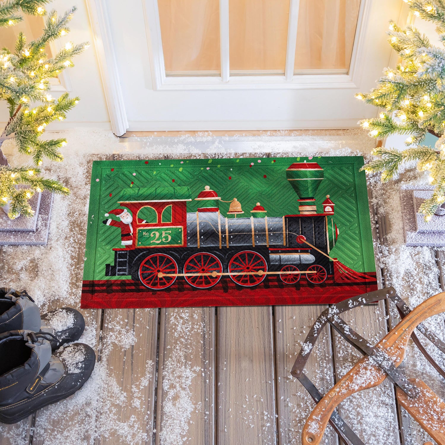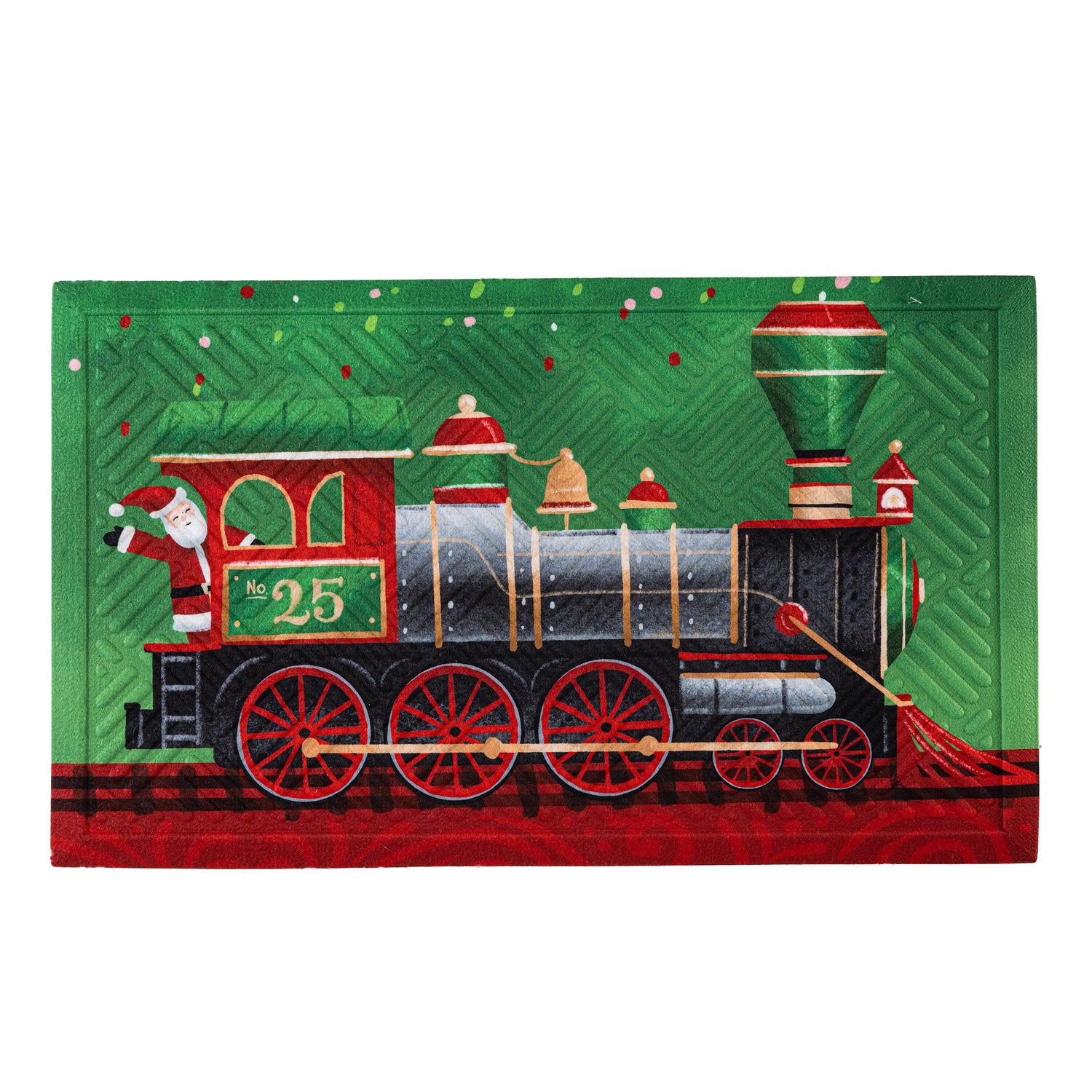 Step into winter style with this embossed mat. Perfect for adding an extra charming touch to any entryway, this welcoming design features an adorable train filled with presents. Evergreen's embossed mats are crafted from outdoor-safe polypropylene and feature a rubber anti-slip backing. The embossed texture makes this mat more effective in trapping dirt, perfect for indoor or outdoor use.