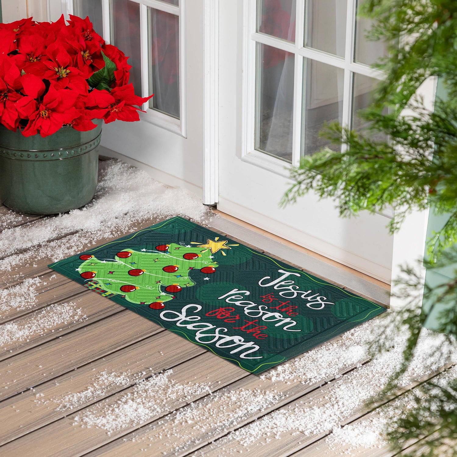 Step into winter style with this embossed mat. Perfect for adding an extra charming touch to any entryway, this welcoming design features a Christmas tree with a heartwarming message. Evergreen's embossed mats are crafted from outdoor-safe polypropylene and feature a rubber anti-slip backing. The embossed texture makes this mat more effective in trapping dirt, perfect for indoor or outdoor use.