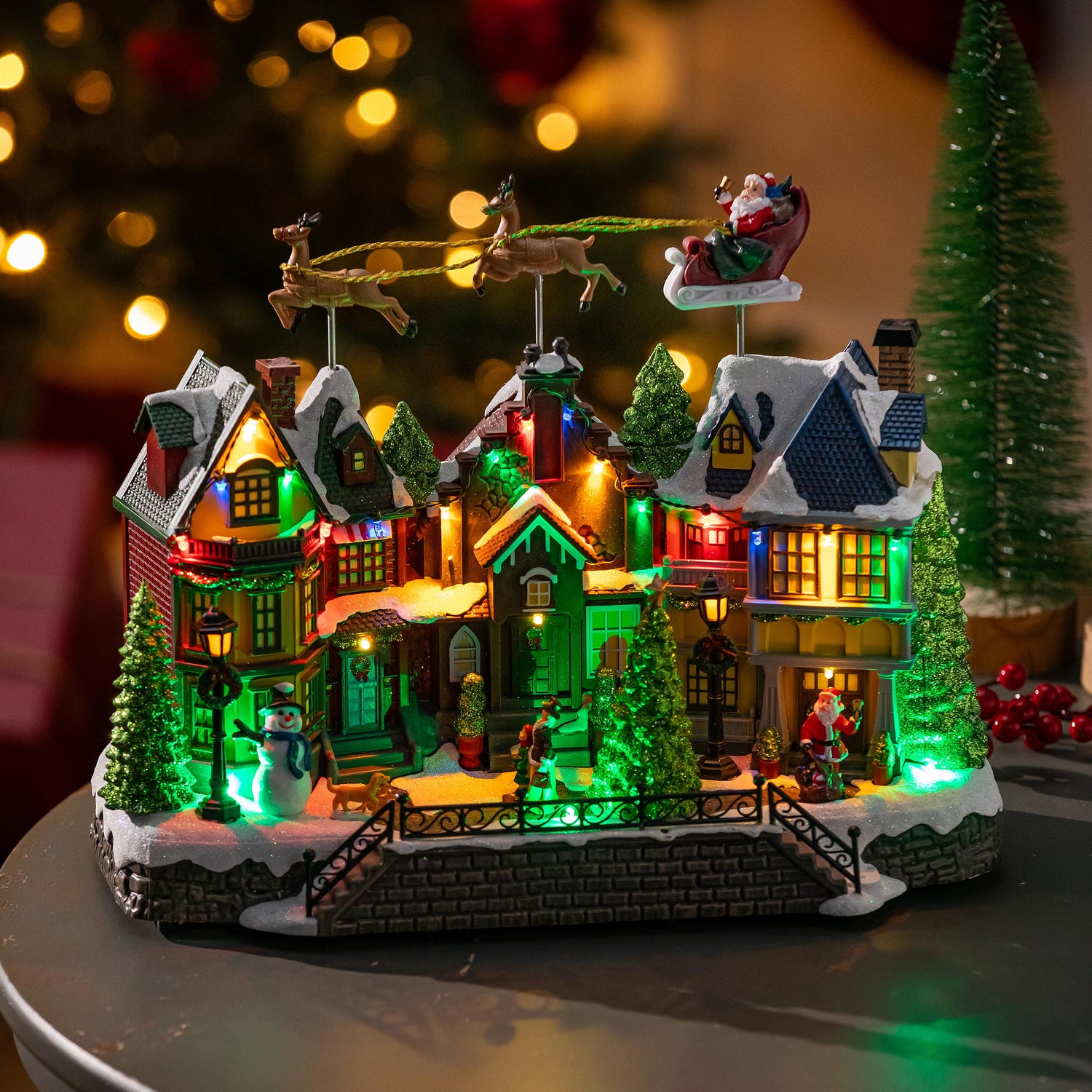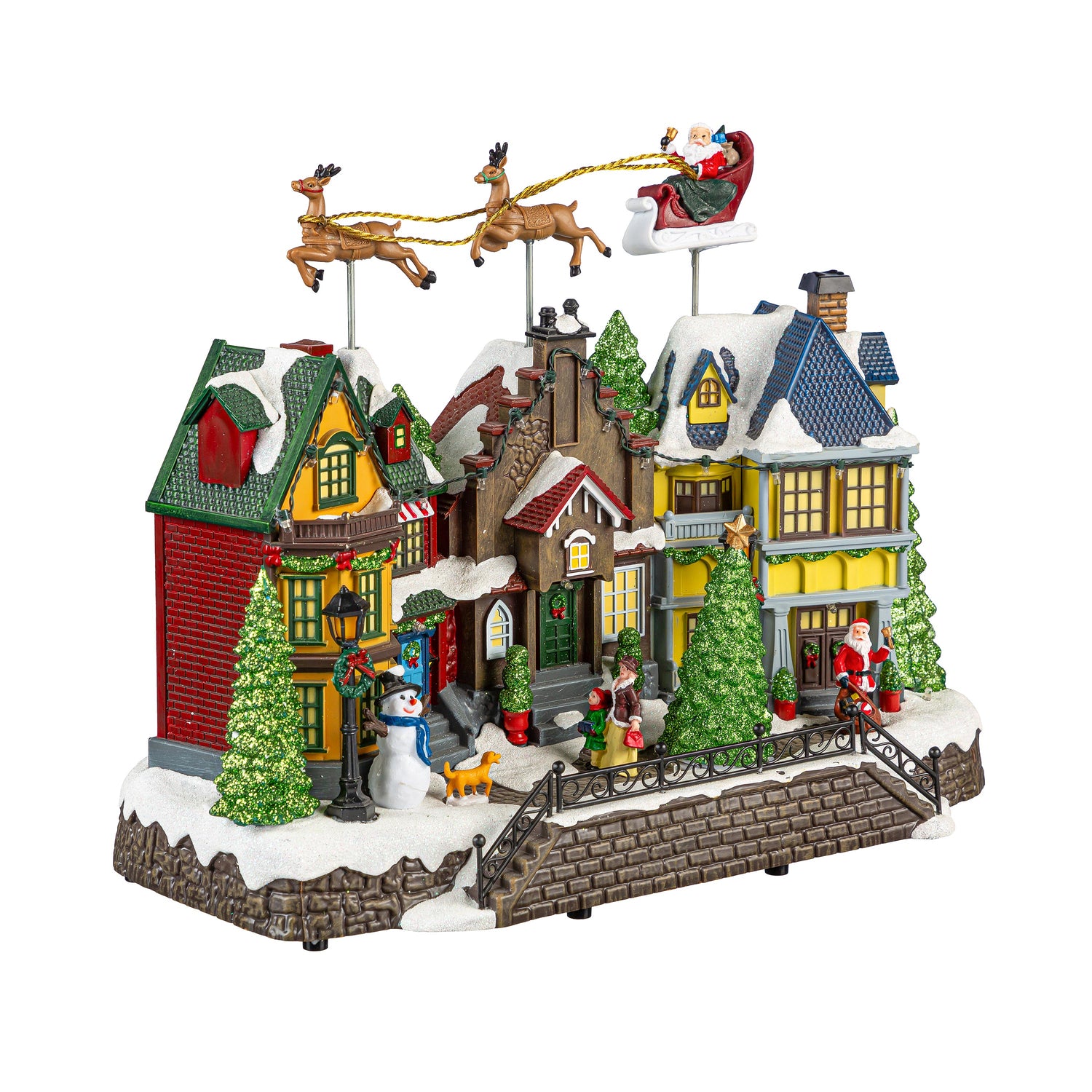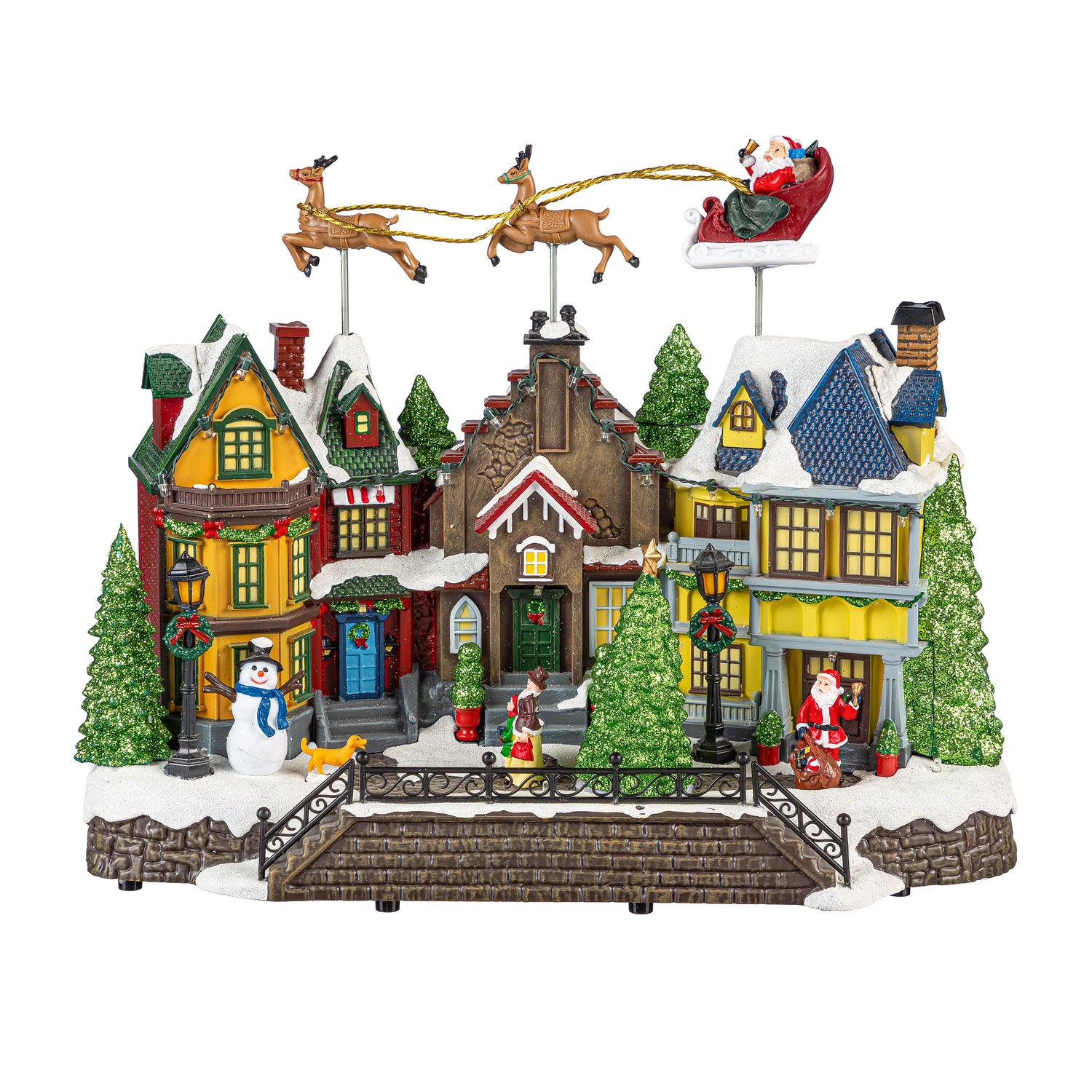 Traditional Santa LED Table Decor Plastic Christmas Town Color Changing, Motion, and Music, 16"L