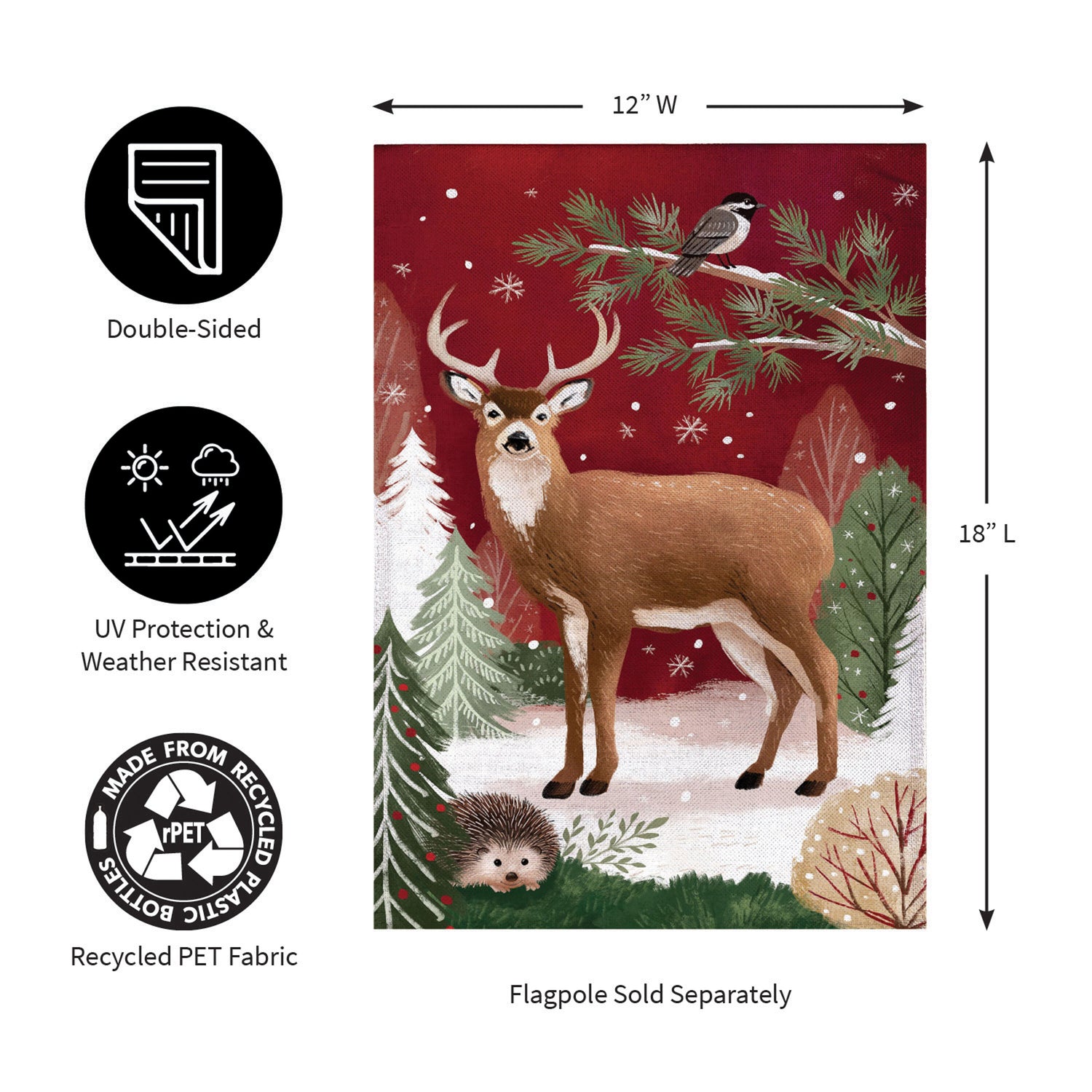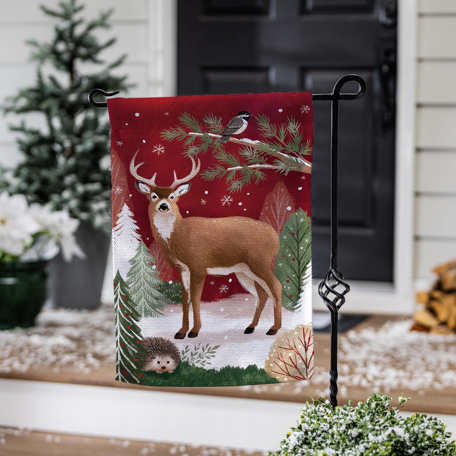 Brimming with seasonal charm and festive color, this flag brings warmth and cheer to outdoor spaces all winter long. A perfect addition to porches, gardens, and entryways, it creates a welcoming touch that celebrates the spirit of the season. Crafted of medium-weight, soft polyester burlap fabric, this flag has the look and feel of real burlap. Artwork is heat transferred onto both sides of the textured fabric to create a natural, crafted look. The poly-burlap is a durable and weatherproof material that will not fade or fray after continued use. All flags also feature a sleeve for use with any standard flagpole or stand, sold separately.