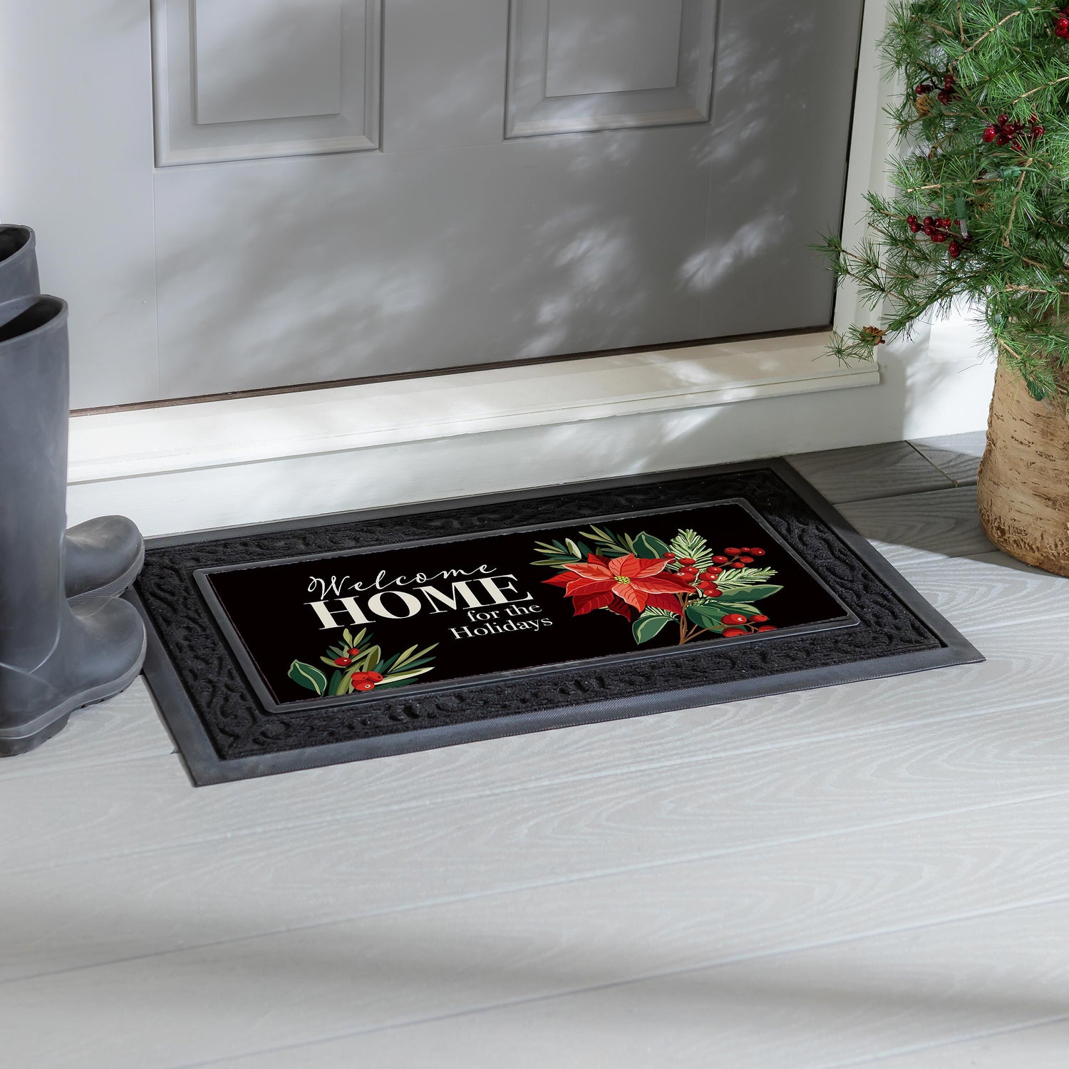 Celebrate the season from the very first step with this festive winter mat. The cheerful design brings a warm and welcoming touch to entryways while adding texture and charm to any doorstep. Crafted from heat-sublimated polyester with a rubber backing, this versatile mat is designed to fit perfectly within Evergreen's switch doormat bases. The mildew resistant mat is ideal for indoor or outdoor use and features a skid-resistant backing to help keep it in place. This welcoming mat will freshen up your stoop season after season while ensuring your home stays debris-free. For stains, simply spot clean with soap and warm water.