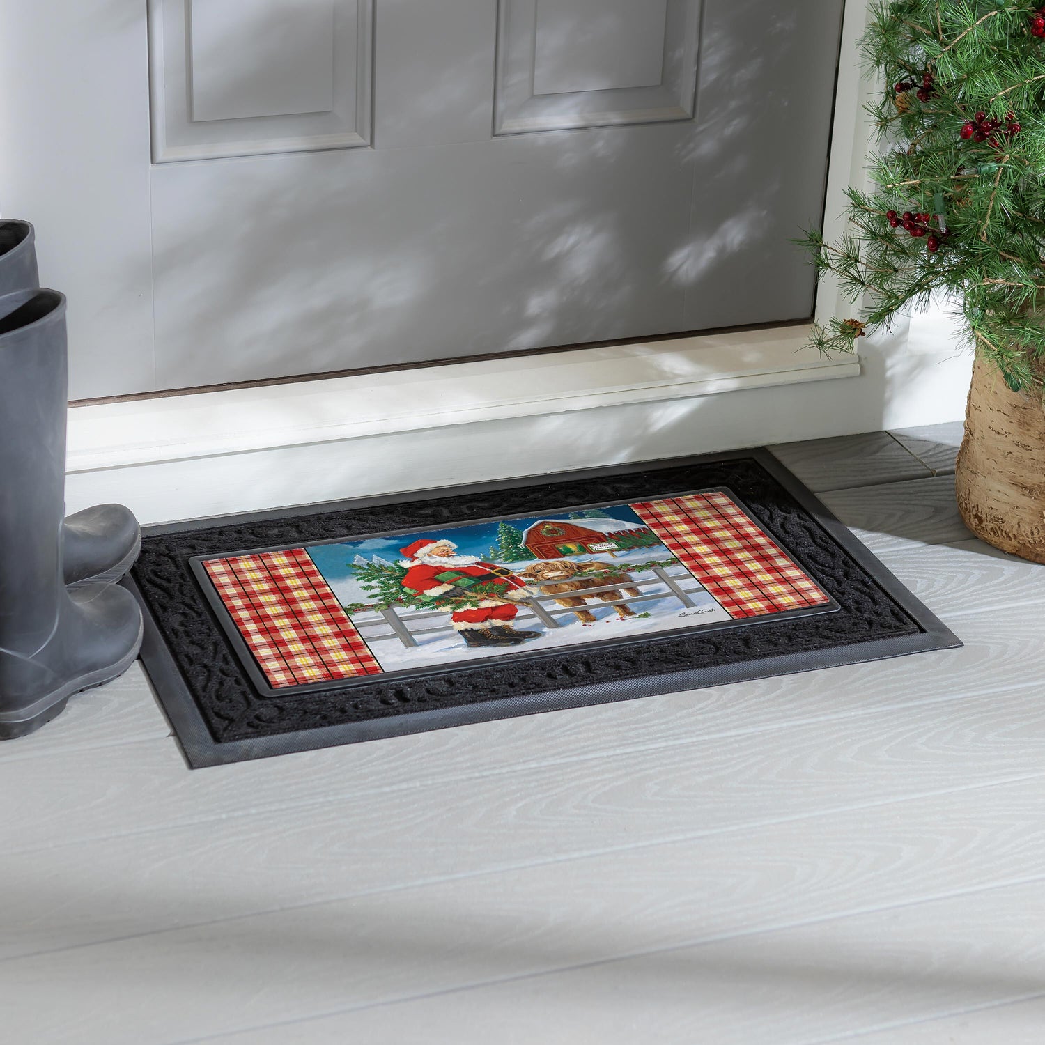 - Celebrate the season from the very first step with this festive winter mat.