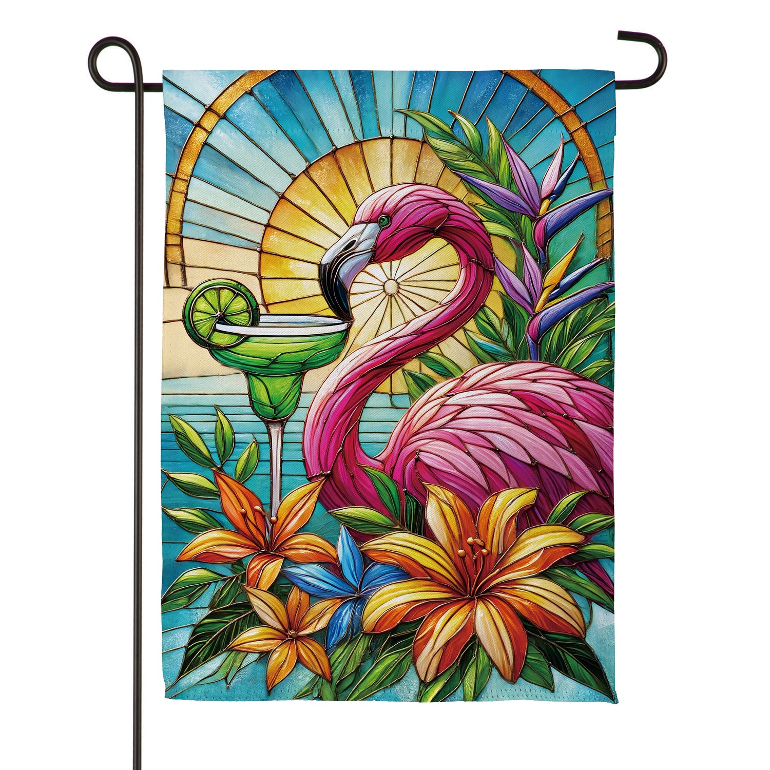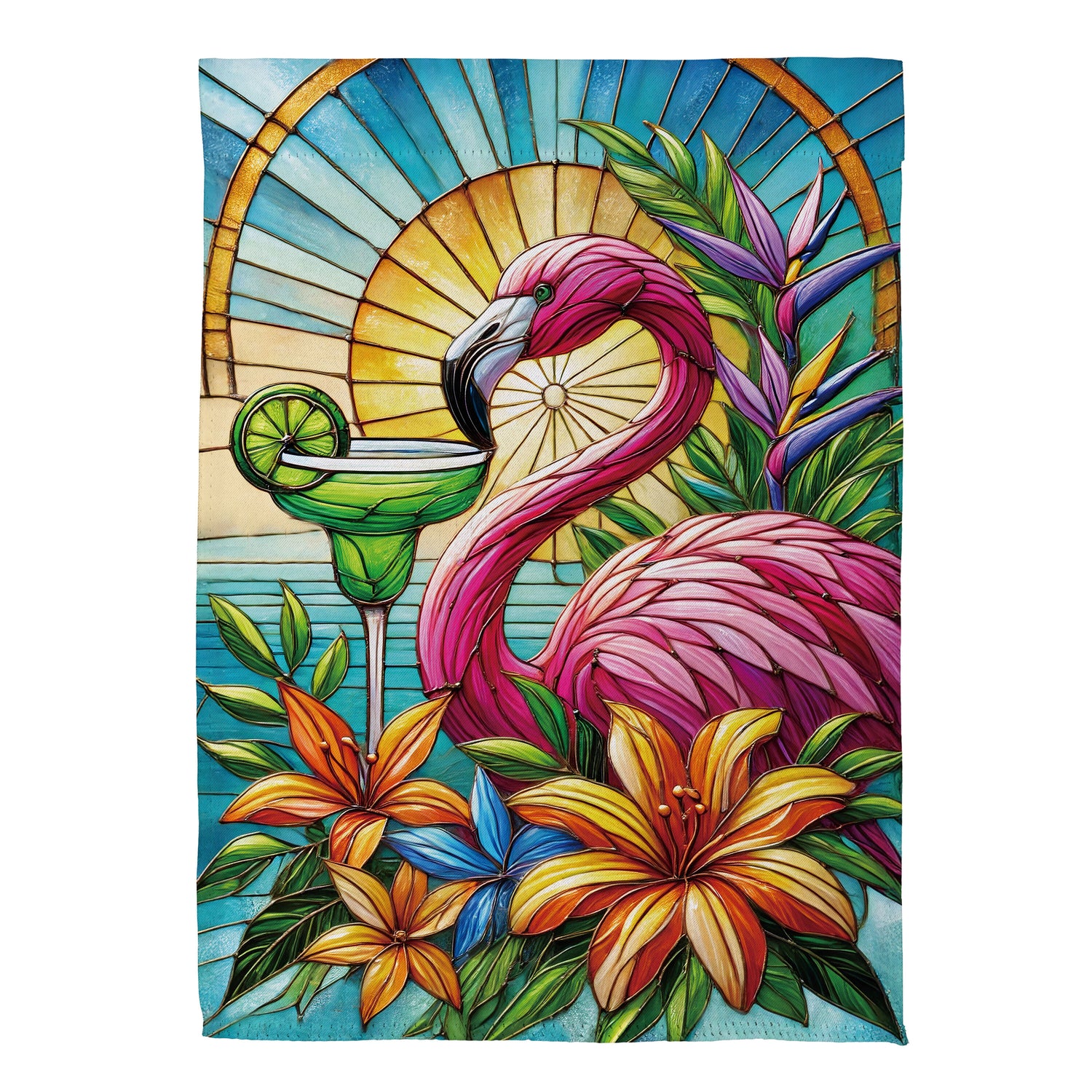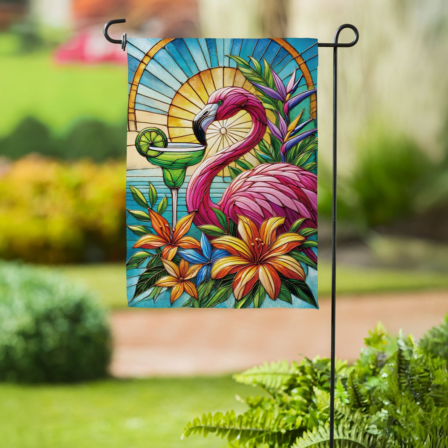 Stained Glass Summer Flamingo Suede Garden Flag