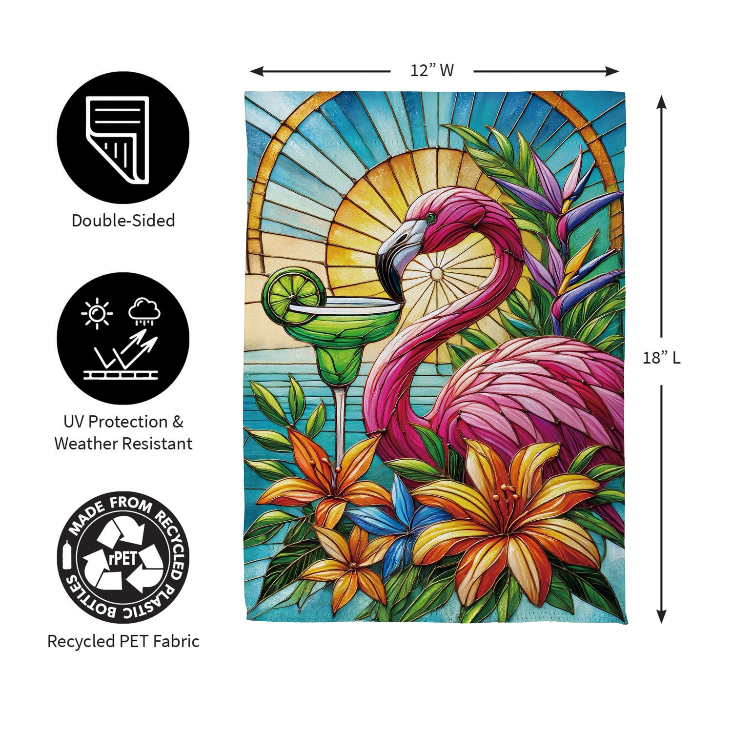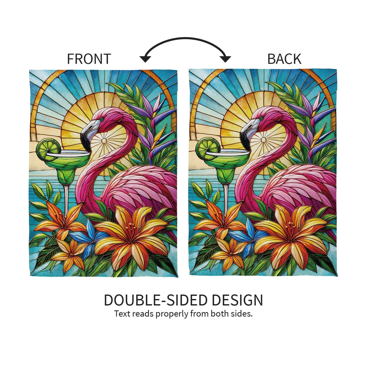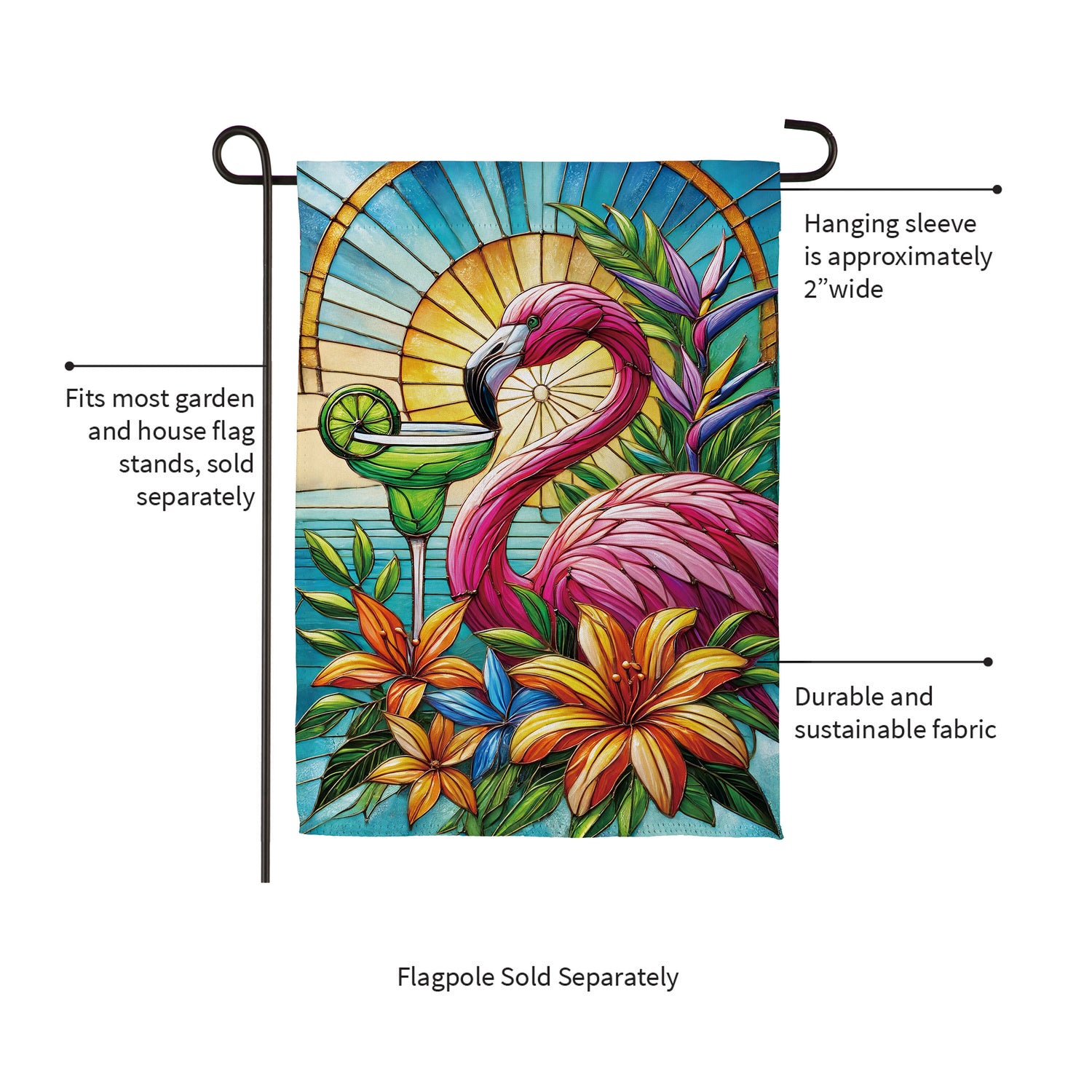 Stained Glass Summer Flamingo Suede Garden Flag