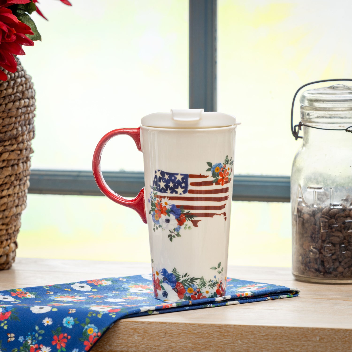 Enjoy a cup of coffee even on the busiest mornings with our Perfect Cup. Crafted from durable ceramic, the mug is covered in charming artwork that adds personality and holds up to 17 ounces of any beverage. Its three-ring silicone lid fits perfectly into the cups molded grooves for added security. For quick cleaning and reheating purposes, its top-rack dishwasher safe and can be microwaved. The cup comes packaged in a beautiful coordinating gift box.