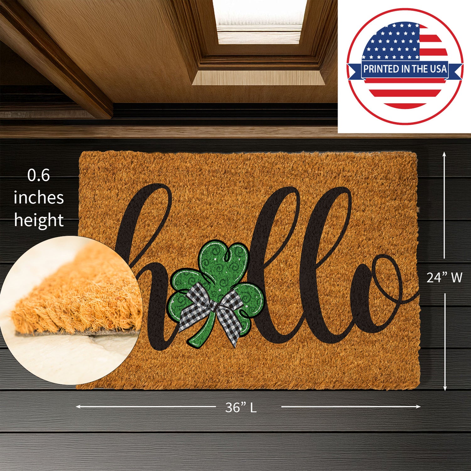 Hello Shamrock Large Coir Mat, 36"x24"
