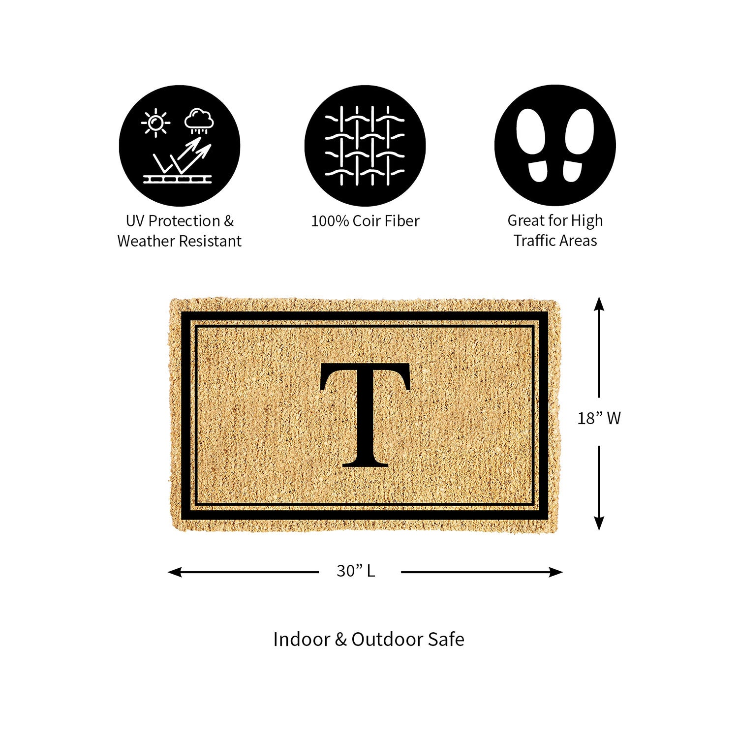 28" x 16" Monogram Coir Mat, Letter "T"