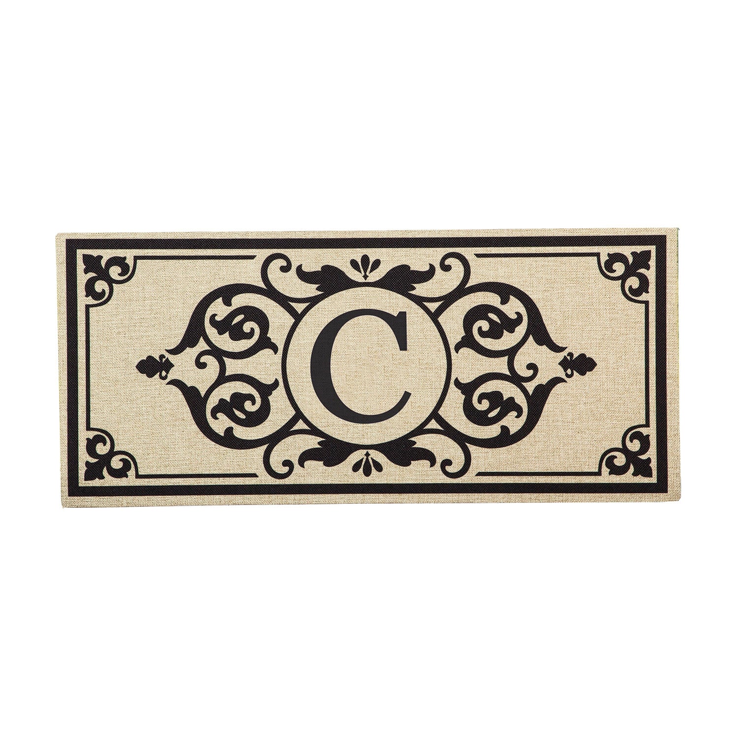 Cambridge Monogram Burlap Sassafras Switch Mat, Letter C, 22" x 10"