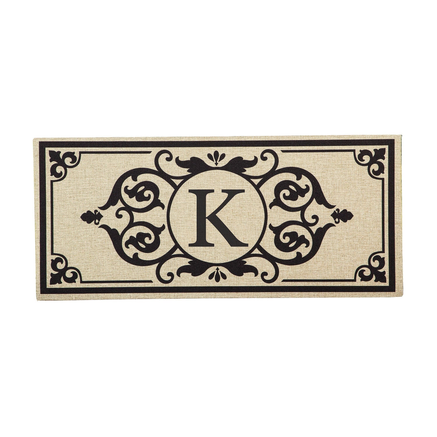 Cambridge Monogram Burlap Sassafras Switch Mat, Letter K, 22" x 10"