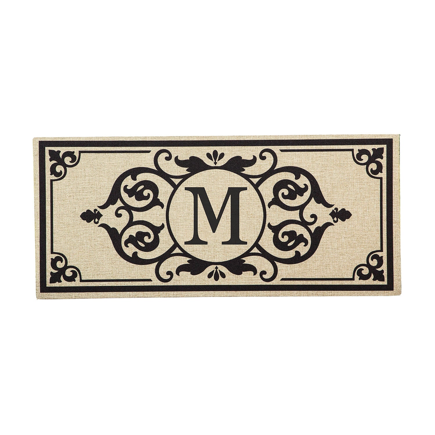 Cambridge Monogram Burlap Sassafras Switch Mat, Letter M, 22" x 10"