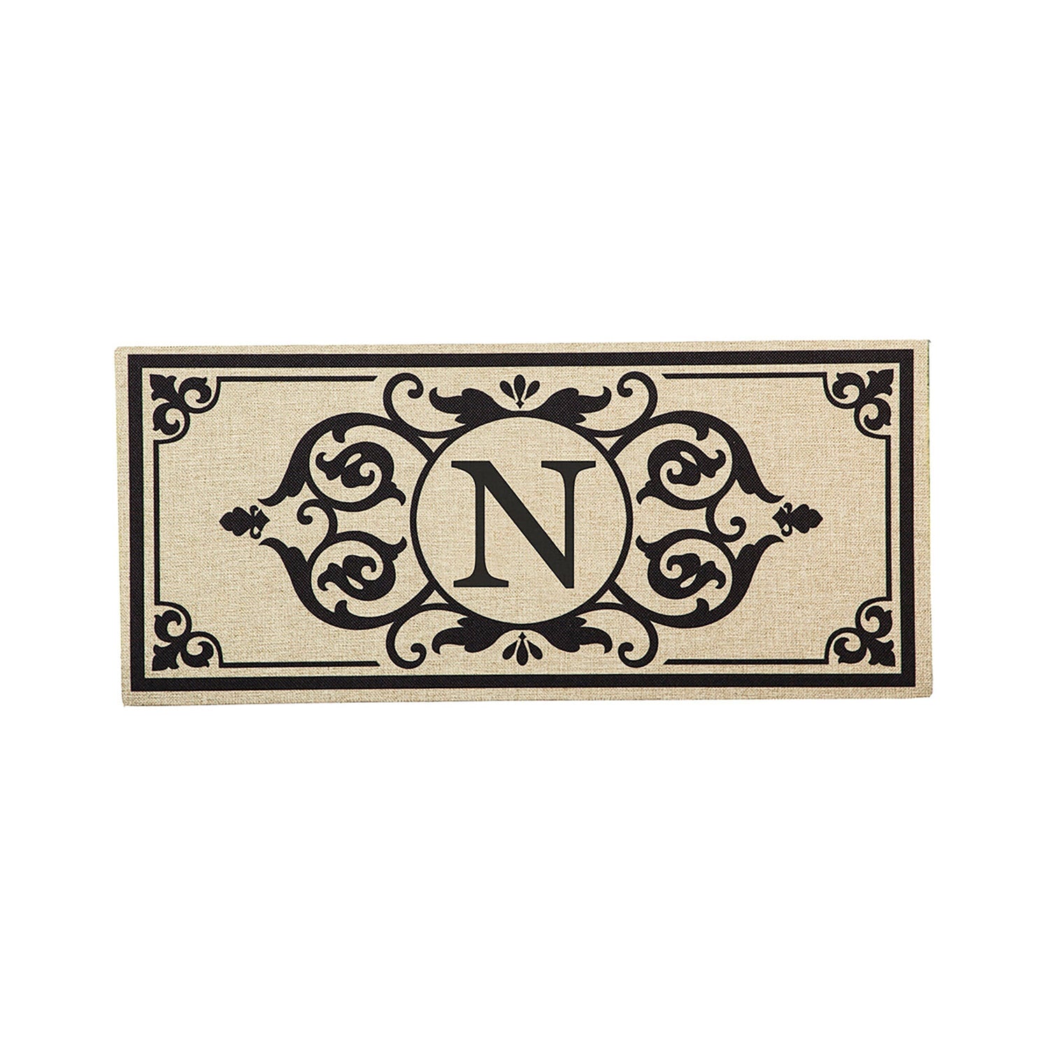 Cambridge Monogram Burlap Sassafras Switch Mat, Letter N, 22" x 10"