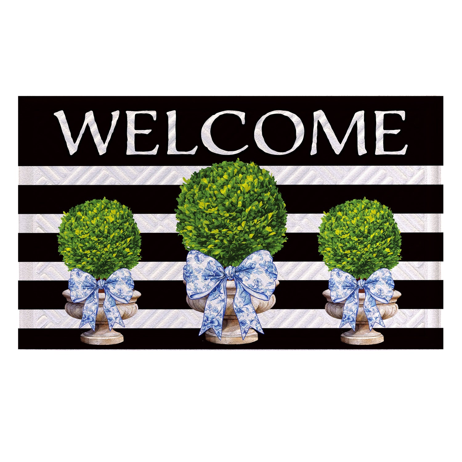 Sweep guests off their feet with our beautifully made embossed mats! Made with bright pops of color that are perfect for the season, this mat will put pep in anyone's step. Evergreen's embossed mats are crafted from outdoor-safe polypropylene and feature a rubber anti-slip backing. The embossed texture makes this mat more effective in trapping dirt, perfect for indoor or outdoor use. Place it in a high-traffic area to keep debris out of the home.