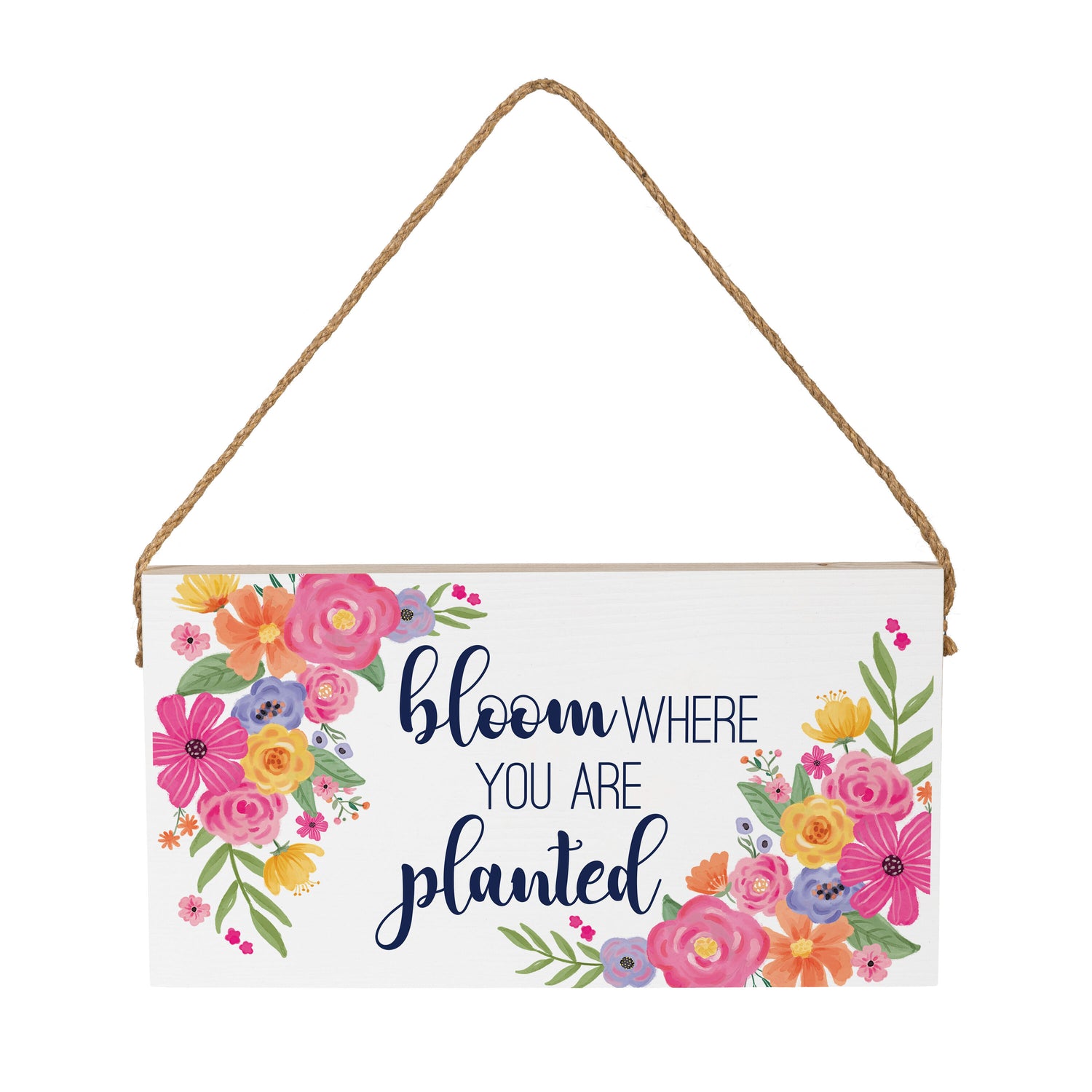 Bunny Blooms Garden Decor, Hanging Sign, Bloom Where You are Planted, 11" L x 6" H