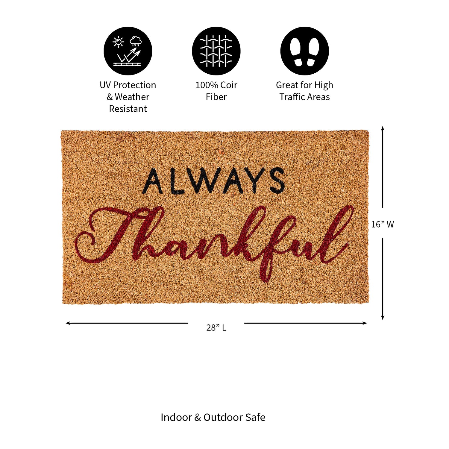 28" x 16" Nature Coir Mat, Thankful