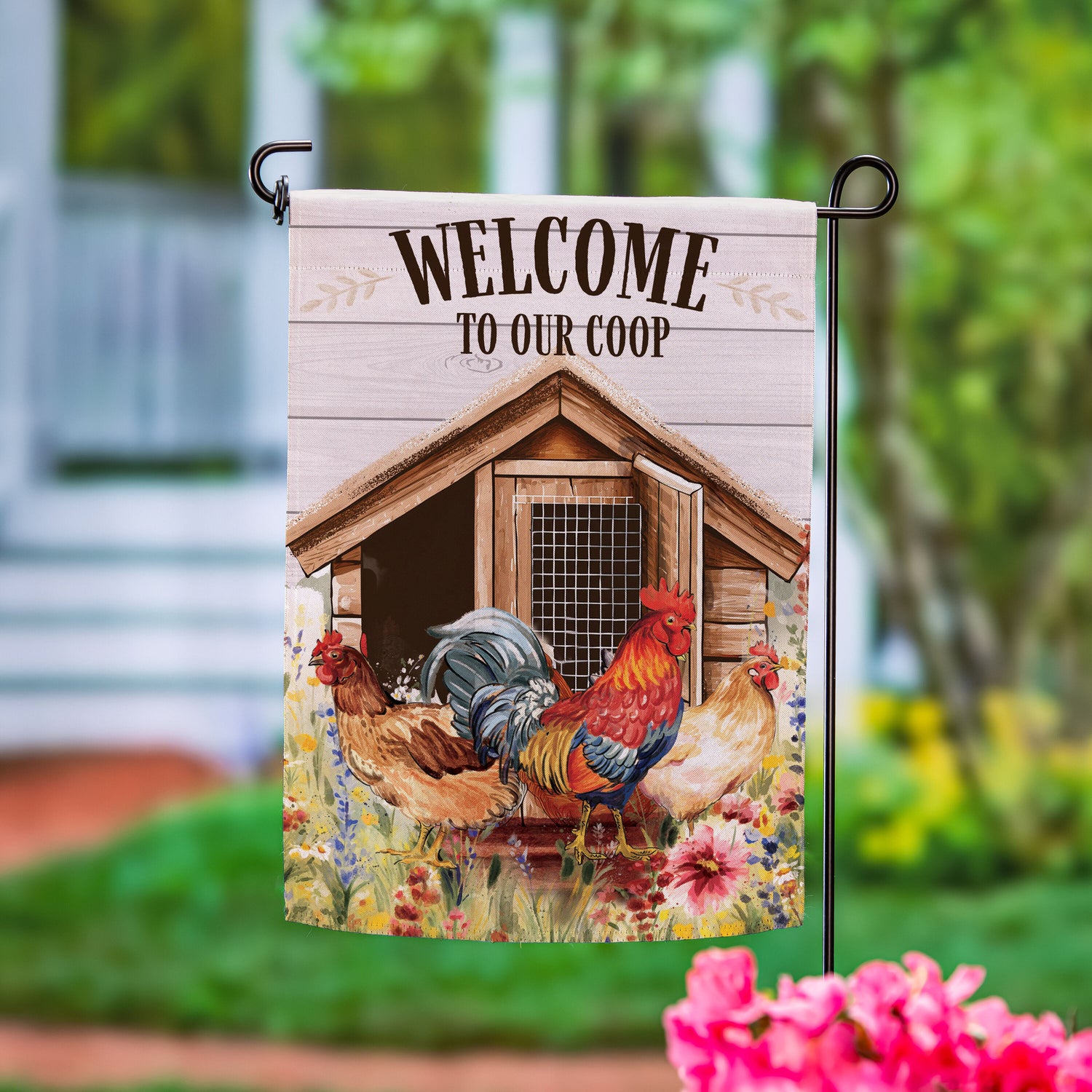 Bursting with bright colors and a detailed, lively design that adds beauty to any space, this flag is perfect for spring and beyond. Hang it in the garden to greet guests, neighbors, and friends. Flag is crafted of medium-weight suede fabric made from recycled plastic that provides a soft and durable texture. Artwork is heat transferred onto the sun-blocking material so that it is easily viewed from both sides. The weatherproof flag will not fray or fade with continued outdoor use. This flag features a sleeve for use with any standard flagpole or stand, sold separately.