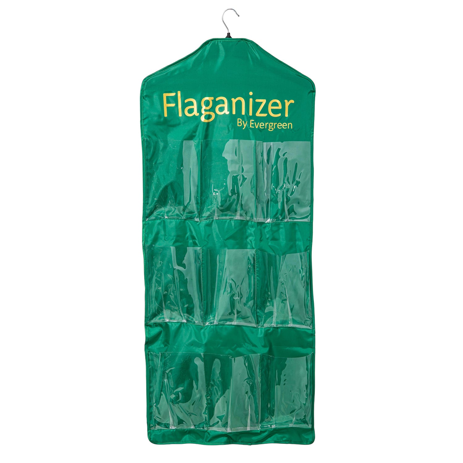 Keep all of your flags organized in one easy location! This two-sided flag organizer can hold up to 33 of your favorite house or garden flags, so you'll easily be able to decorate your home appropriately for the season!