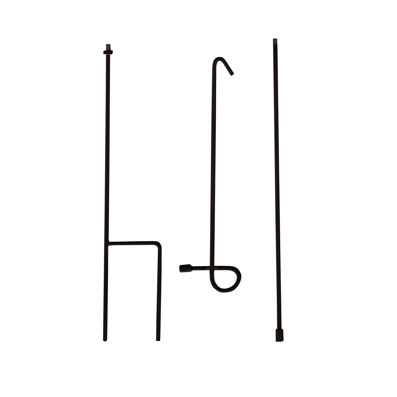 Every garden needs a flag, and every flag needs a pole. This classically-designed flagpole holds a garden-sized flag and is made of sturdy weather-resistant metal. This flag stand will last season after season with it's durable design. The stand also features a convenient h-stake for easy placement anywhere in your garden. This stand comes shipped in 3 pieces that are easily twisted together with the attached tightening screws.