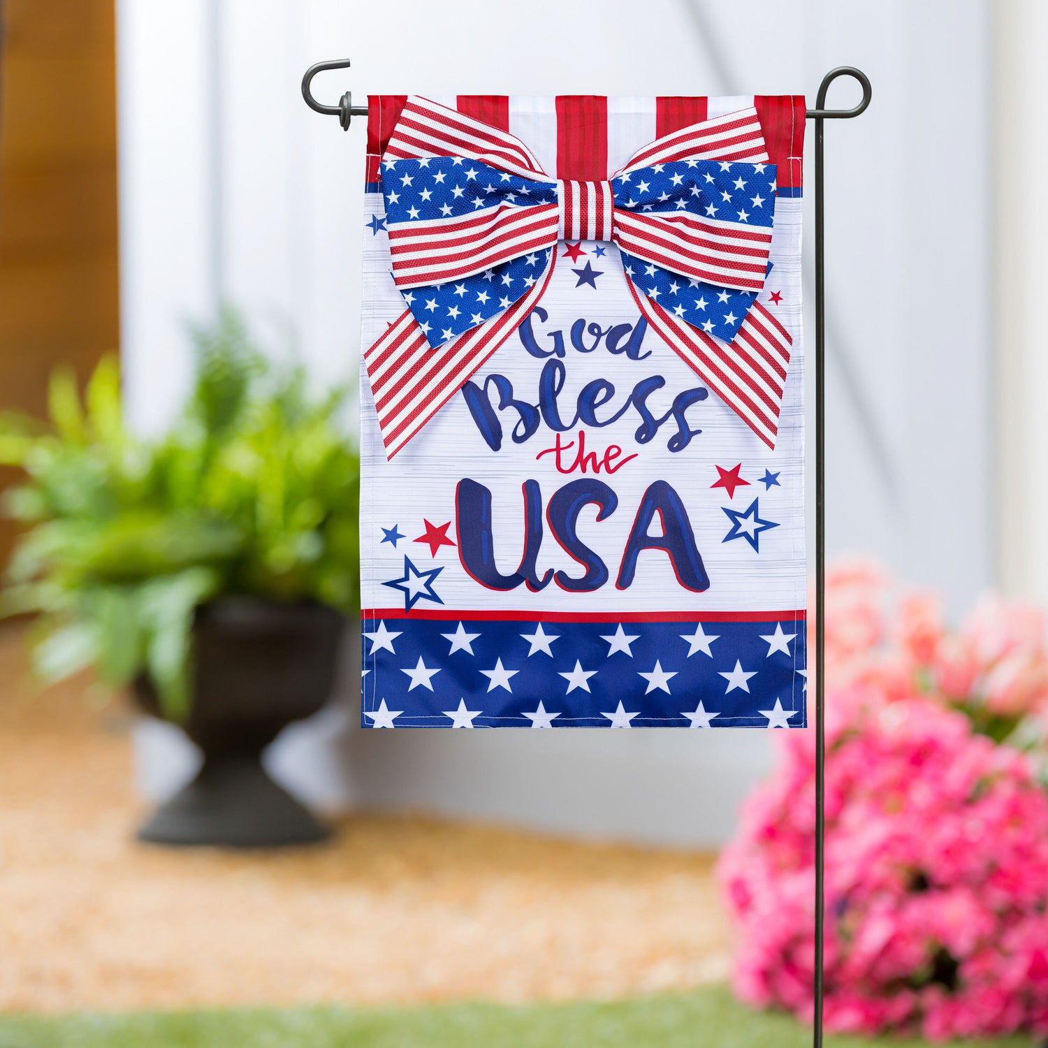 Bless The USA Bow Applique Garden Flag