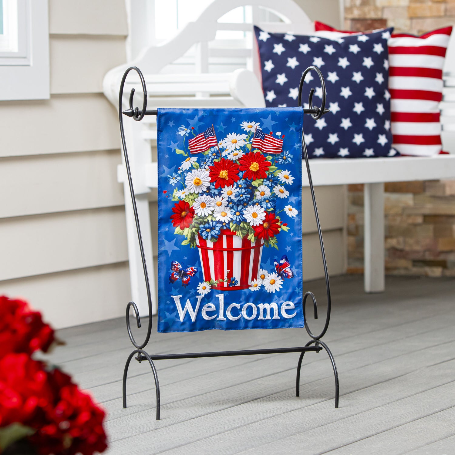 Basket of Patriotic Flowers Applique Garden Flag