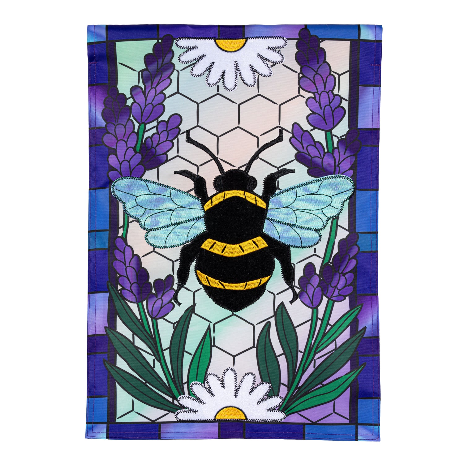 Lavender Honey Bee Applique Garden Flag