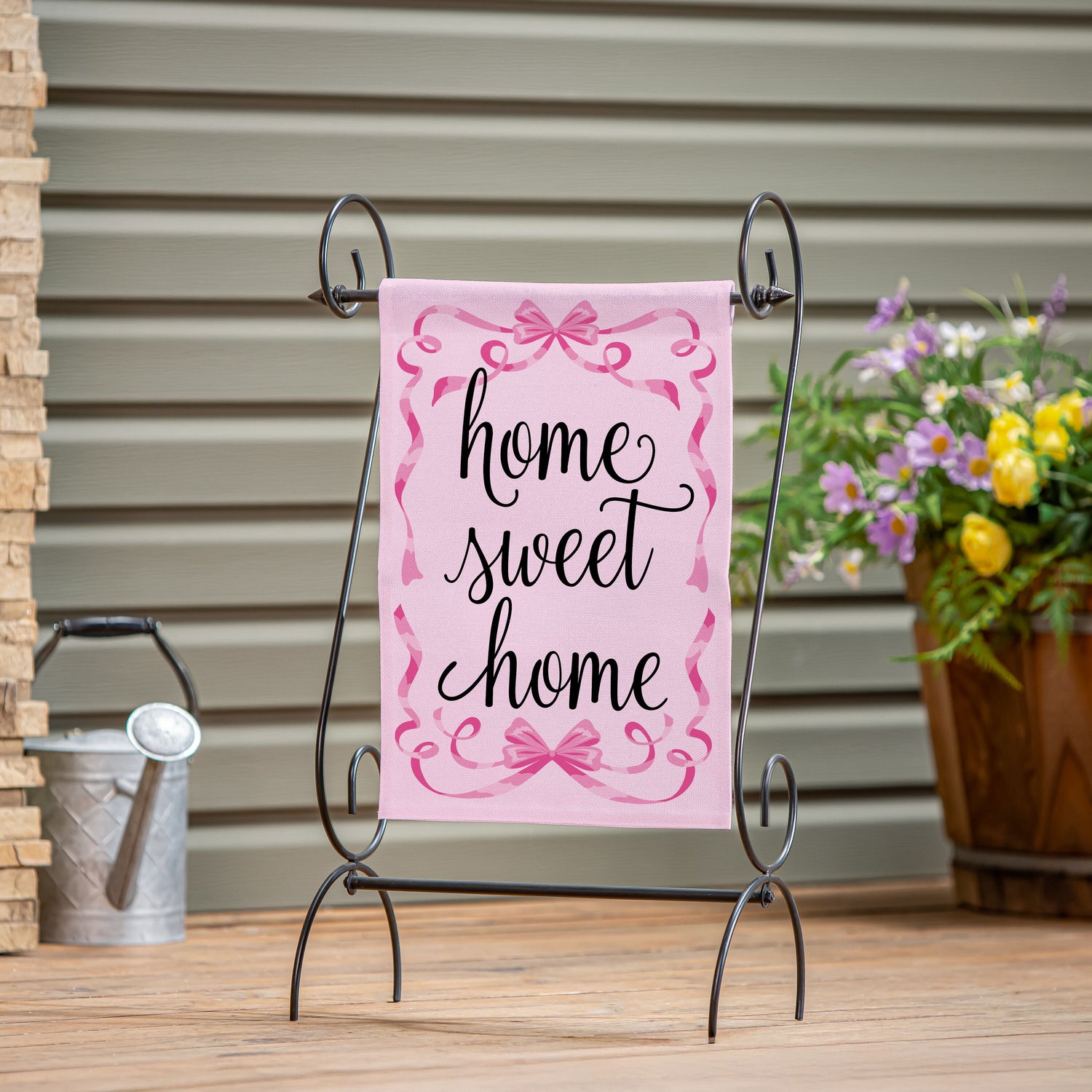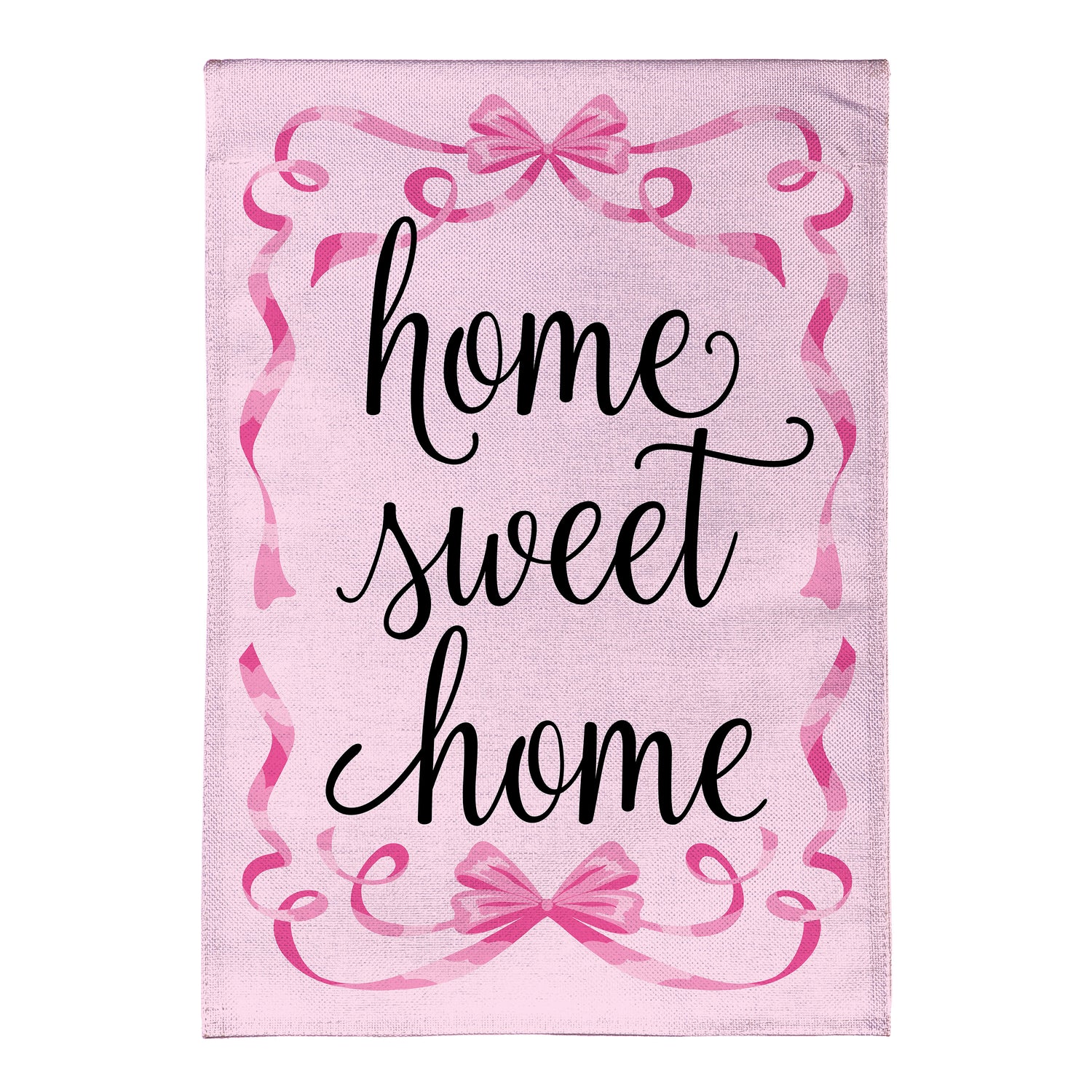 Home Sweet Home Pink Ribbon Burlap Garden Flag