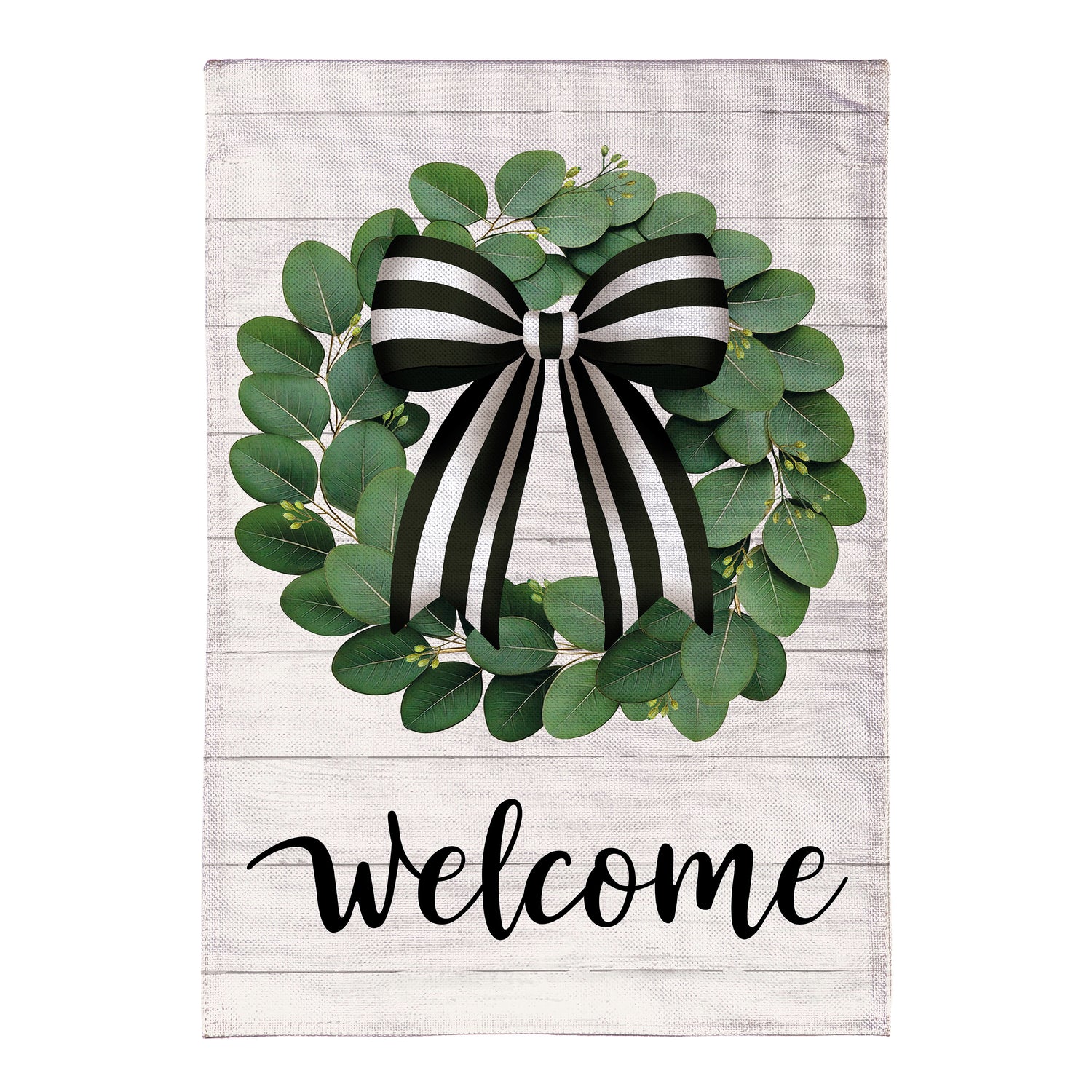 Eucalyptus Leaves Wreath Burlap Garden Flag