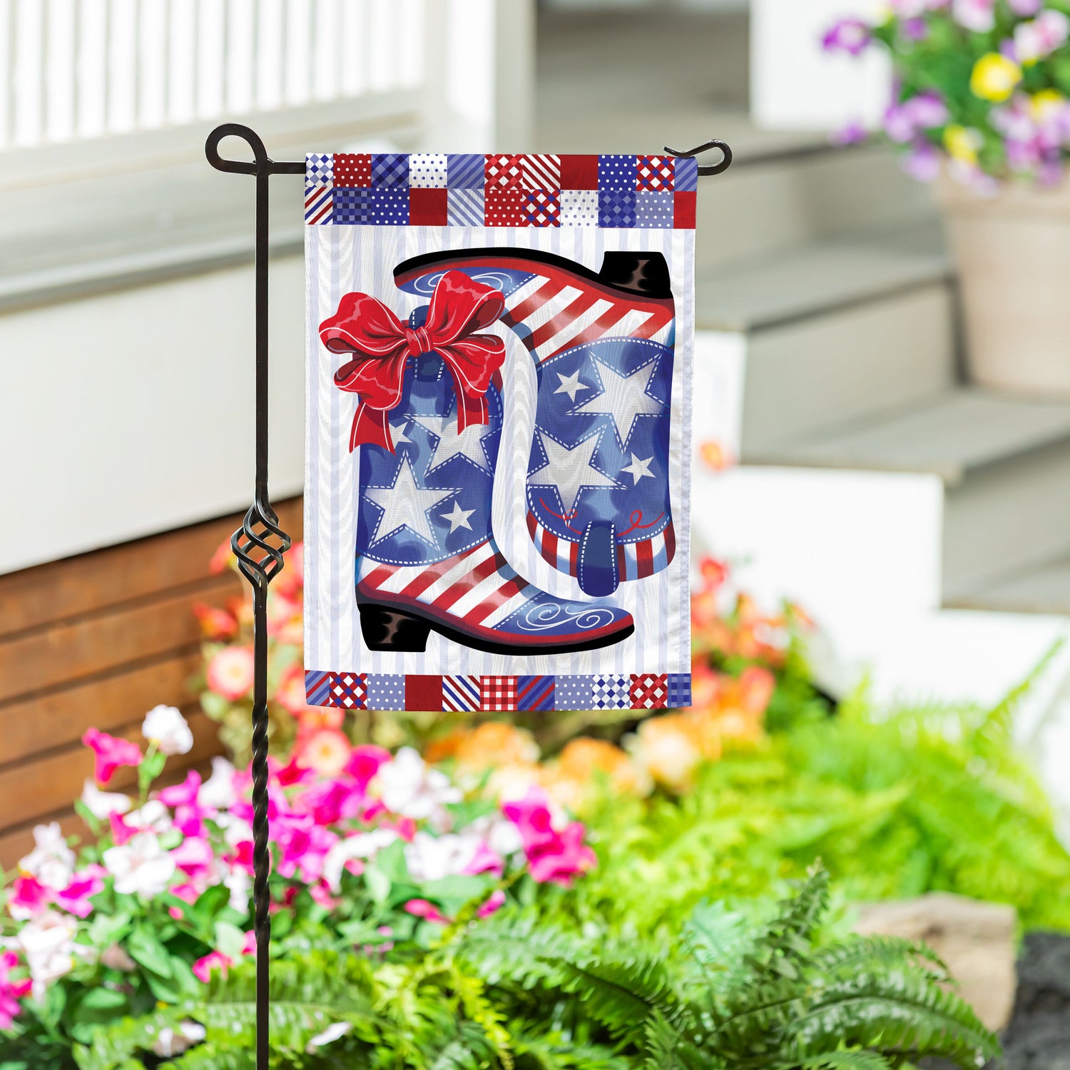 Patriotic Western Boots Moire Garden Flag