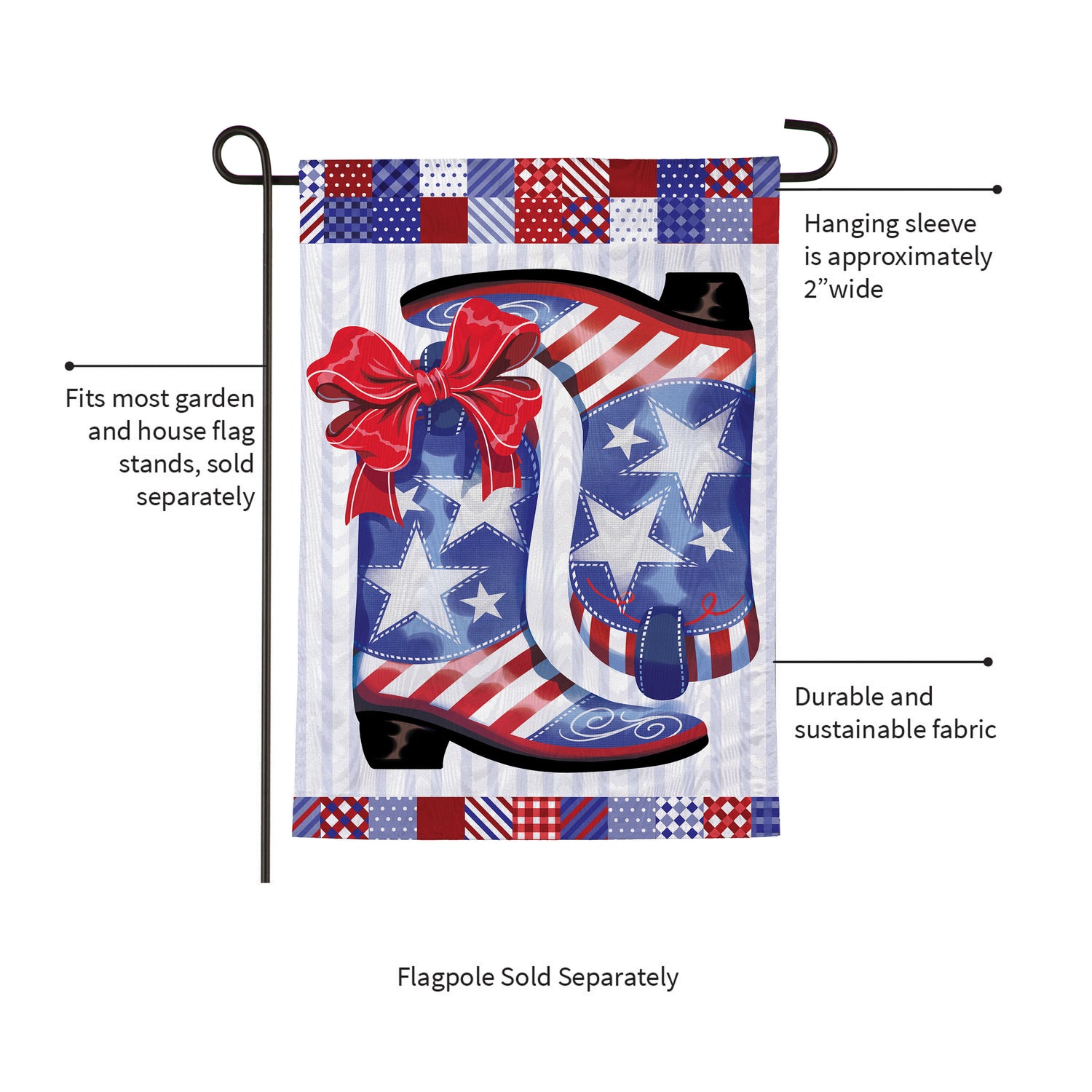 - Fits garden sized flag poles or stands, sold separately.
