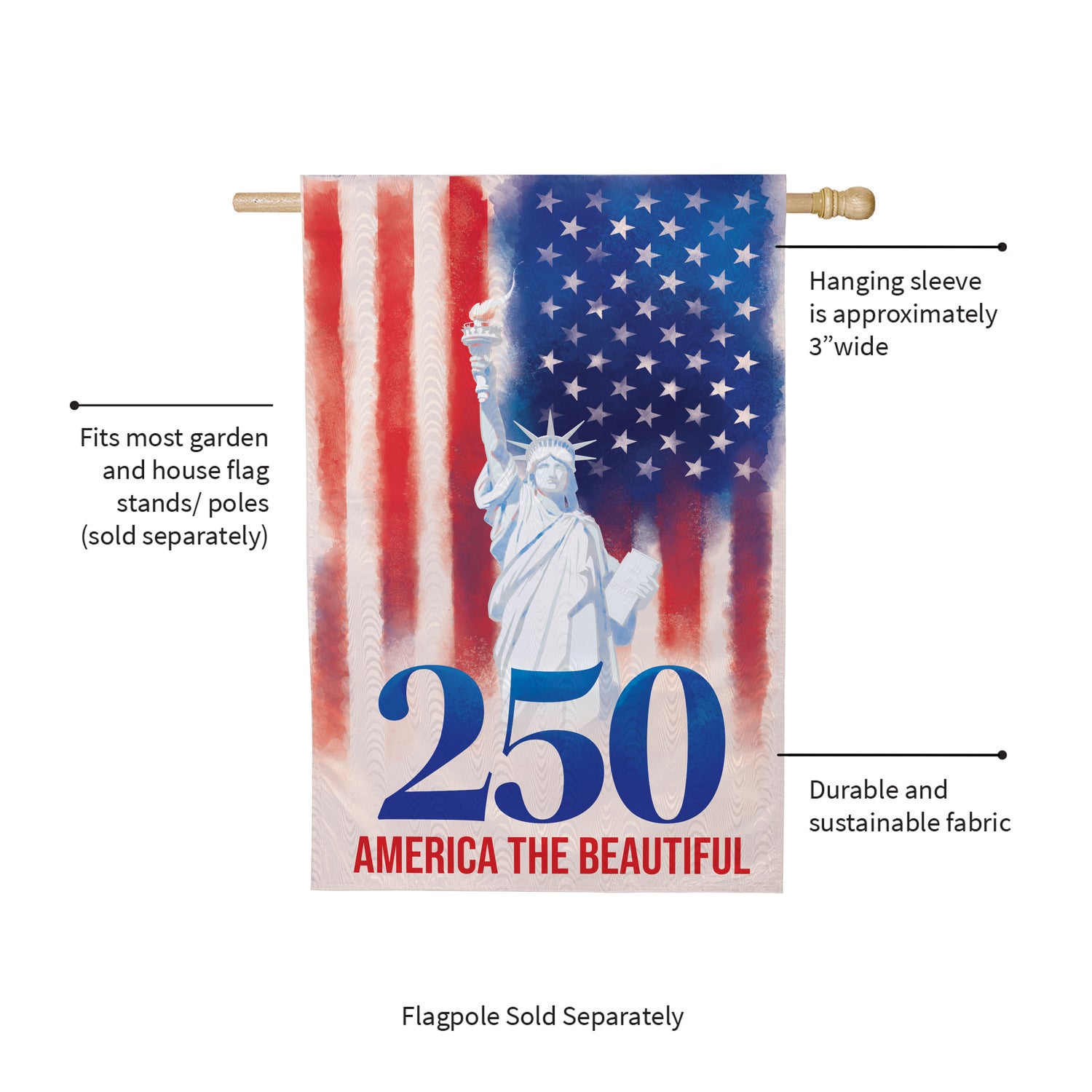 • Fits garden sized flag poles or stands, sold separately.