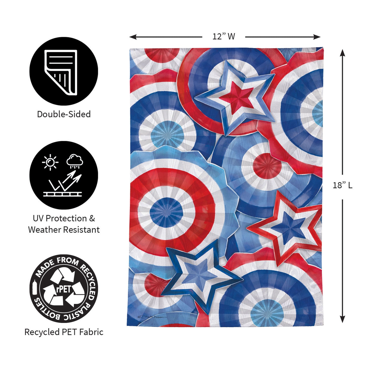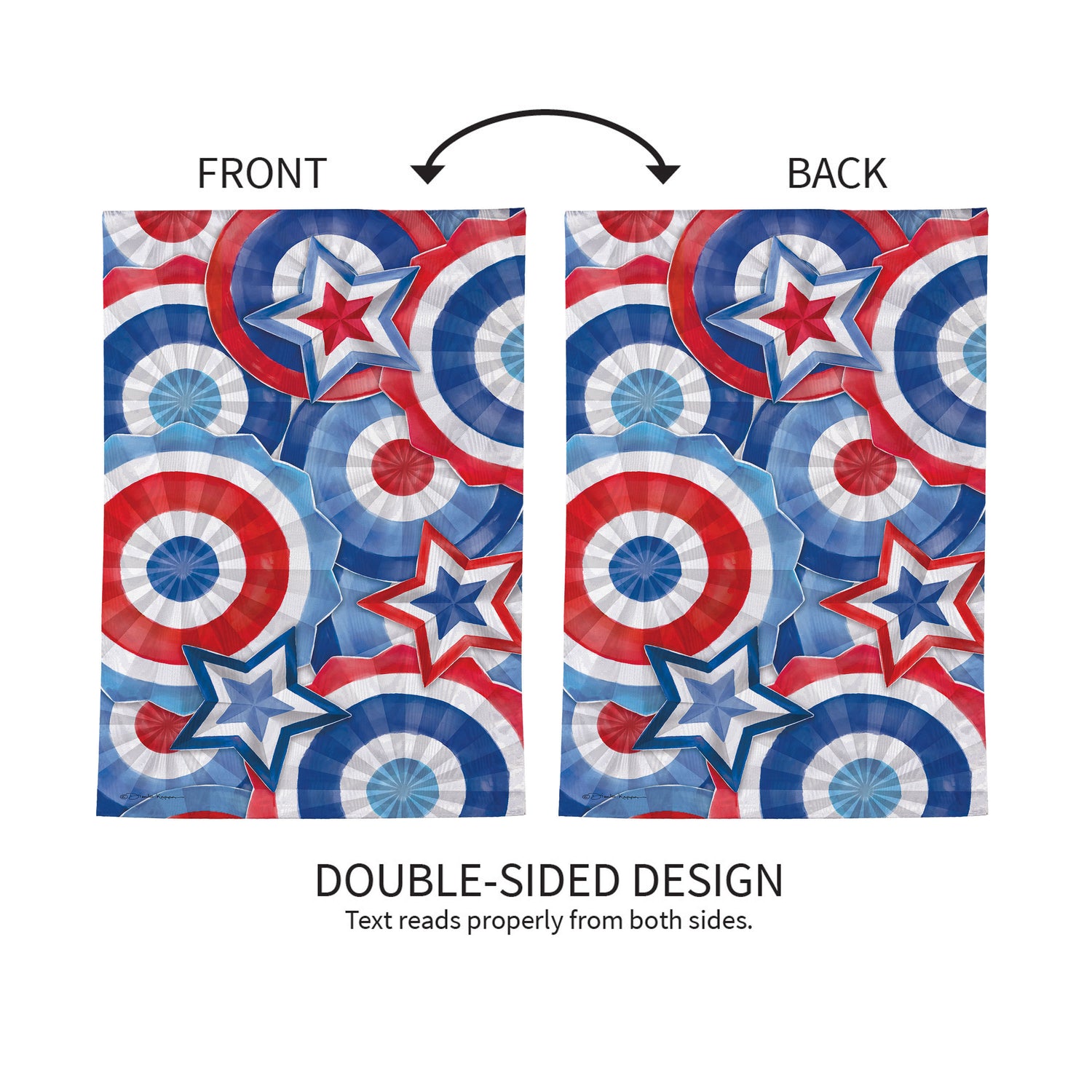 Enjoy the warm rays and cool breezes of summer by relaxing outside on the porch or in the garden. Create a refreshing backyard getaway with the perfect decorations, including this flag. It features vibrant pops of color and rich details, adding cheer and a lively atmosphere to greet friends, family, and neighbors. These double-sided Moire flags deliver unmatched shimmer with a beautiful woodgrain effect that's readable on both sides and illuminates in sunlight. Enjoy all-weather features with heat transferred artwork, UV protected dyes, and sun-blocking material that offer brilliant color and non-fray durability.