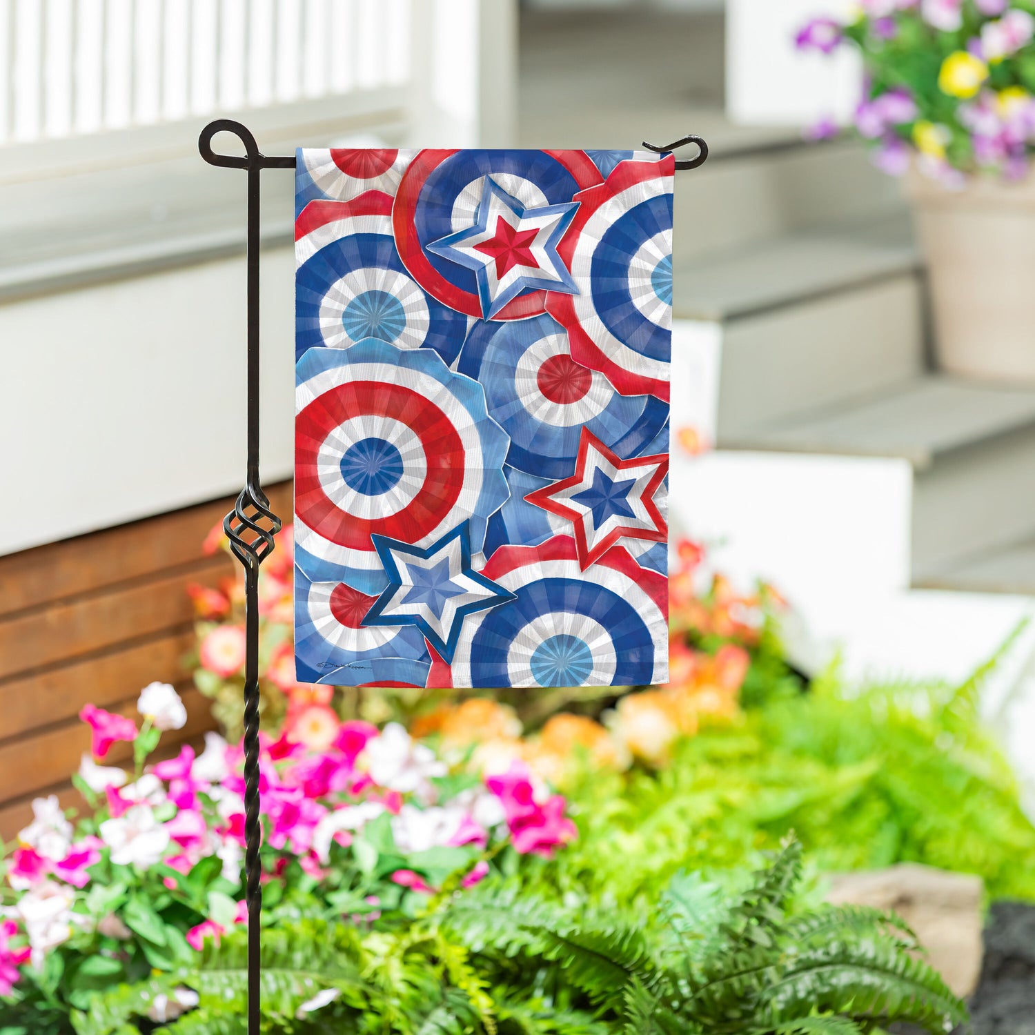 Stars & Shields Moire Garden Flag