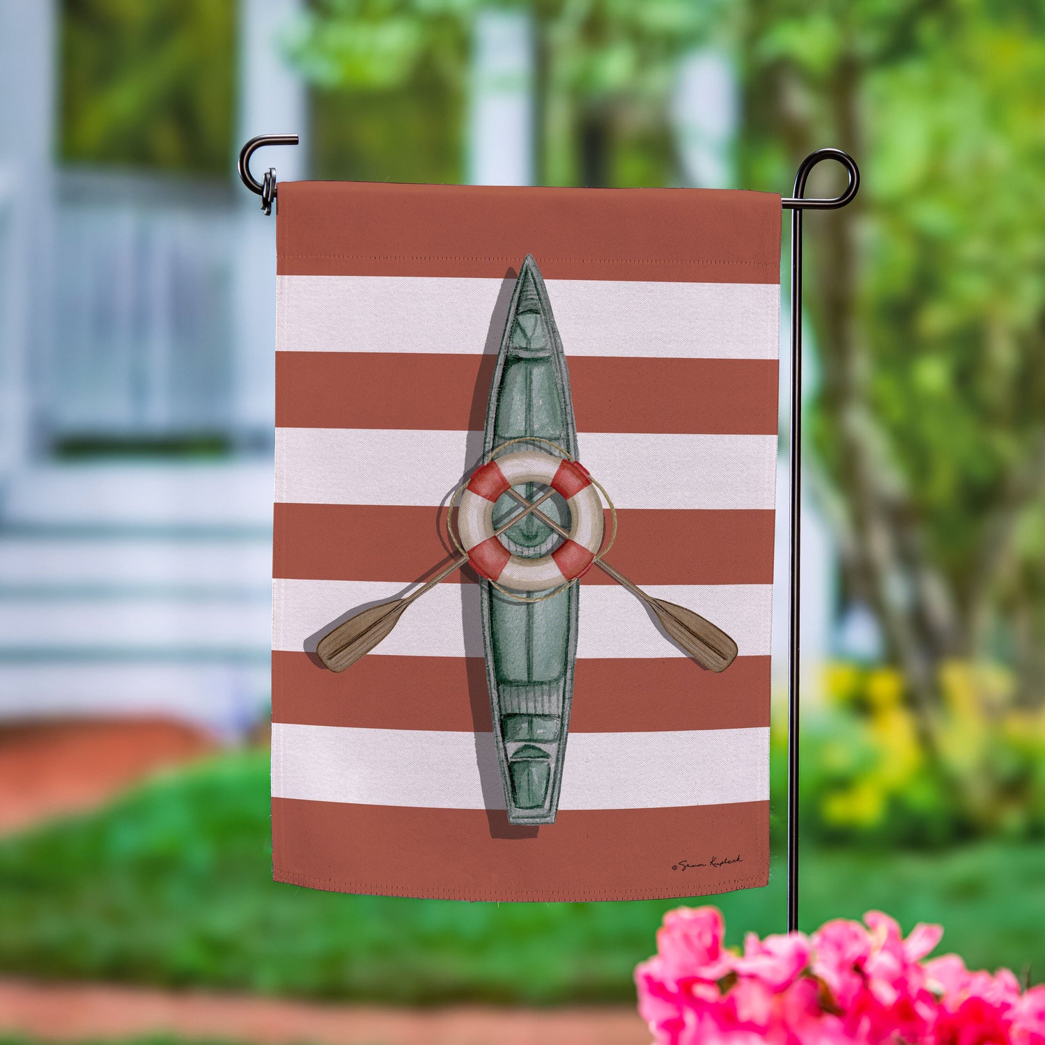 Oars & Canoe Front Back Suede Garden Flag