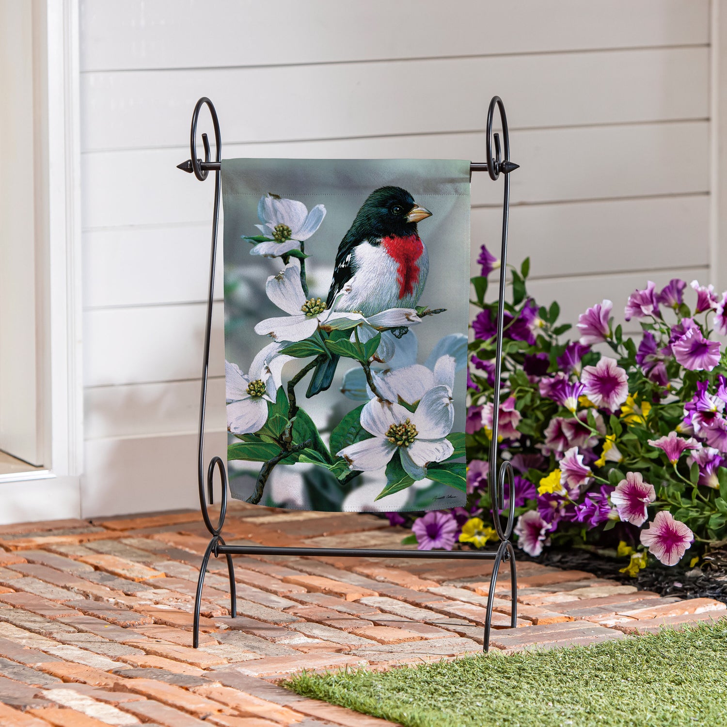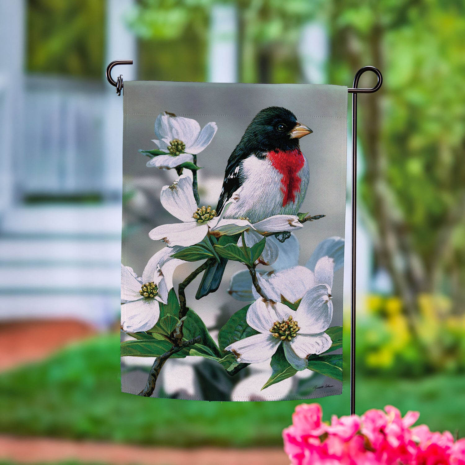 Bursting with bright colors and a detailed, lively design that adds beauty to any space, this flag is perfect for spring and beyond. Hang it in the garden to greet guests, neighbors, and friends. Flag is crafted of medium-weight suede fabric made from recycled plastic that provides a soft and durable texture. Artwork is heat transferred onto the sun-blocking material so that it is easily viewed from both sides. The weatherproof flag will not fray or fade with continued outdoor use. This flag features a sleeve for use with any standard flagpole or stand, sold separately.