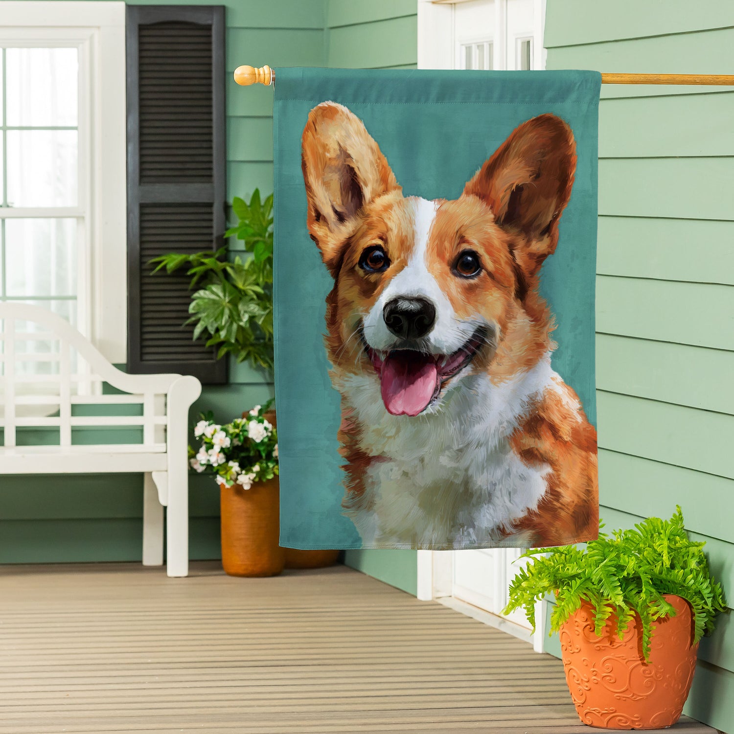 Pet Central Photo Dogs, Corgi Suede House Flag