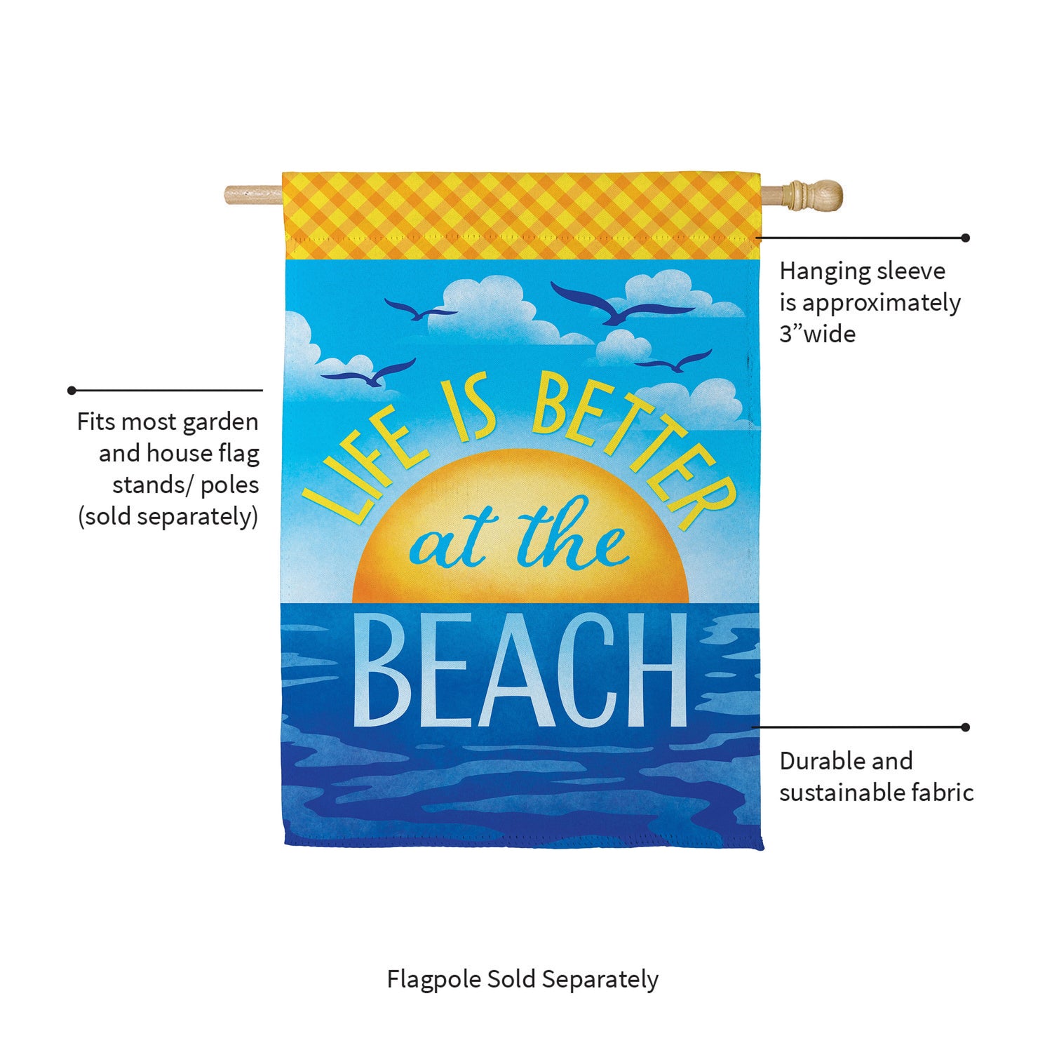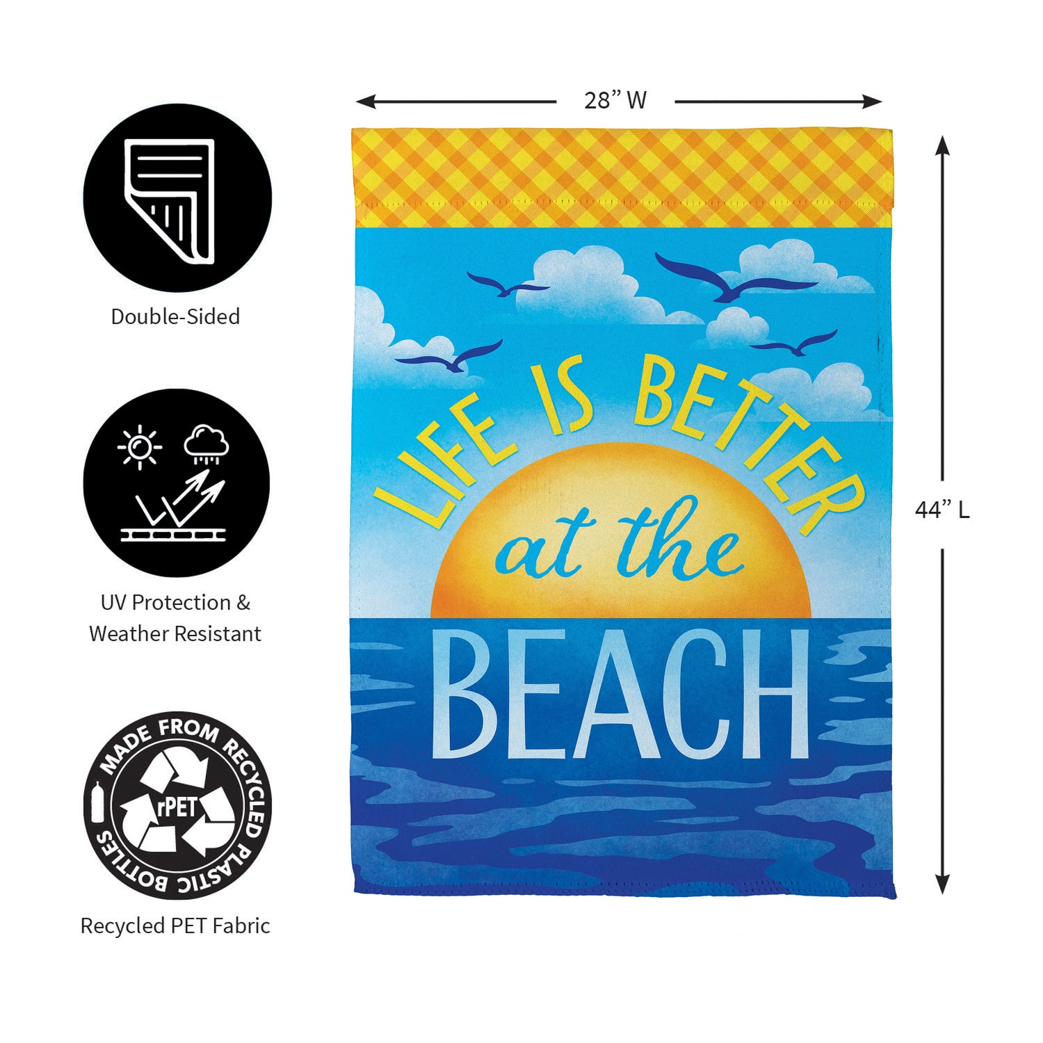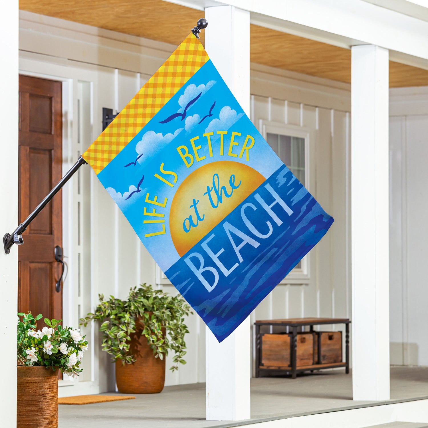 Bursting with bright colors and a detailed, lively design that adds beauty to any space, this flag is perfect for spring and beyond. Hang it in the garden to greet guests, neighbors, and friends. Flag is crafted of medium-weight suede fabric made from recycled plastic that provides a soft and durable texture. Artwork is heat transferred onto the sun-blocking material so that it is easily viewed from both sides. The weatherproof flag will not fray or fade with continued outdoor use. This flag features a sleeve for use with any standard flagpole or stand, sold separately.