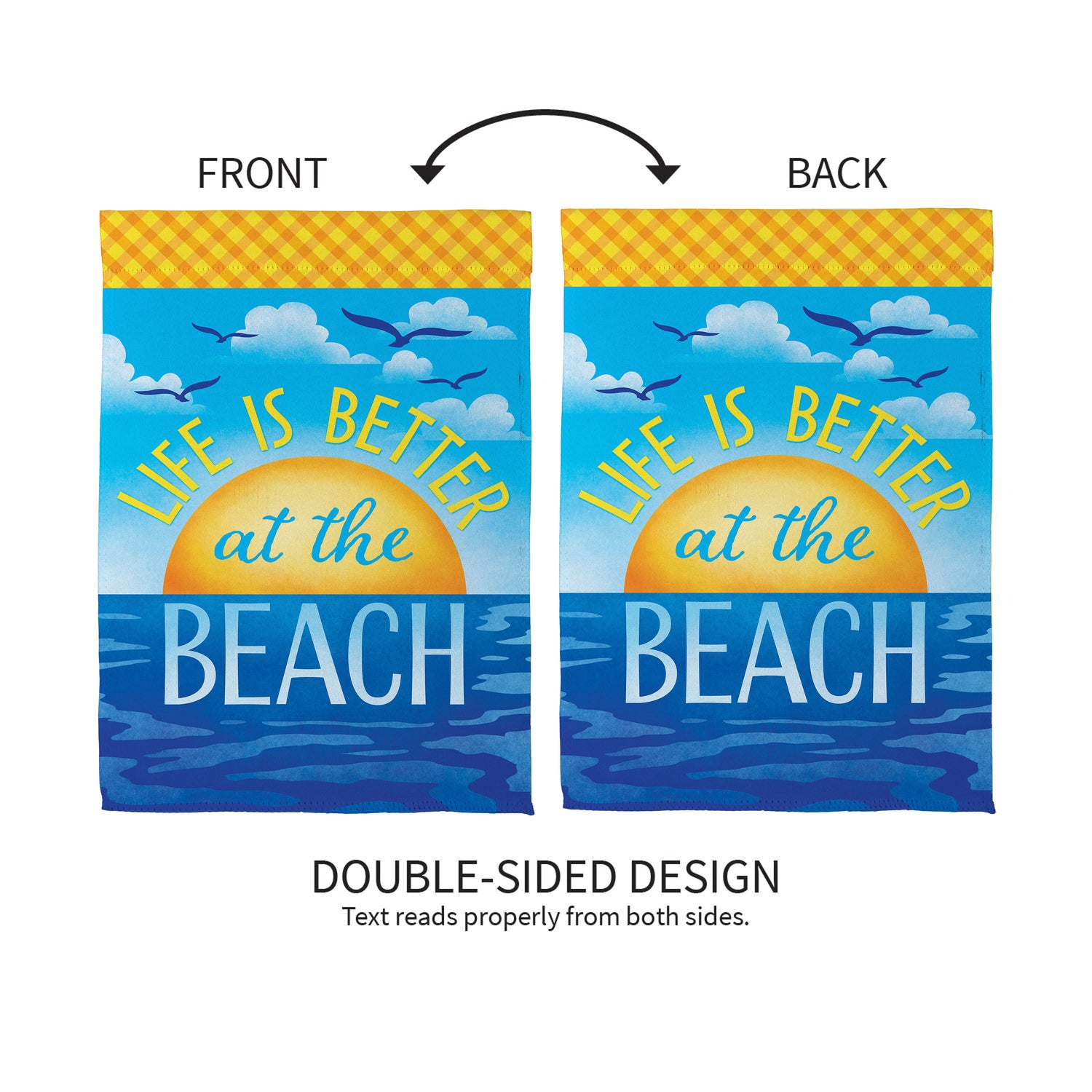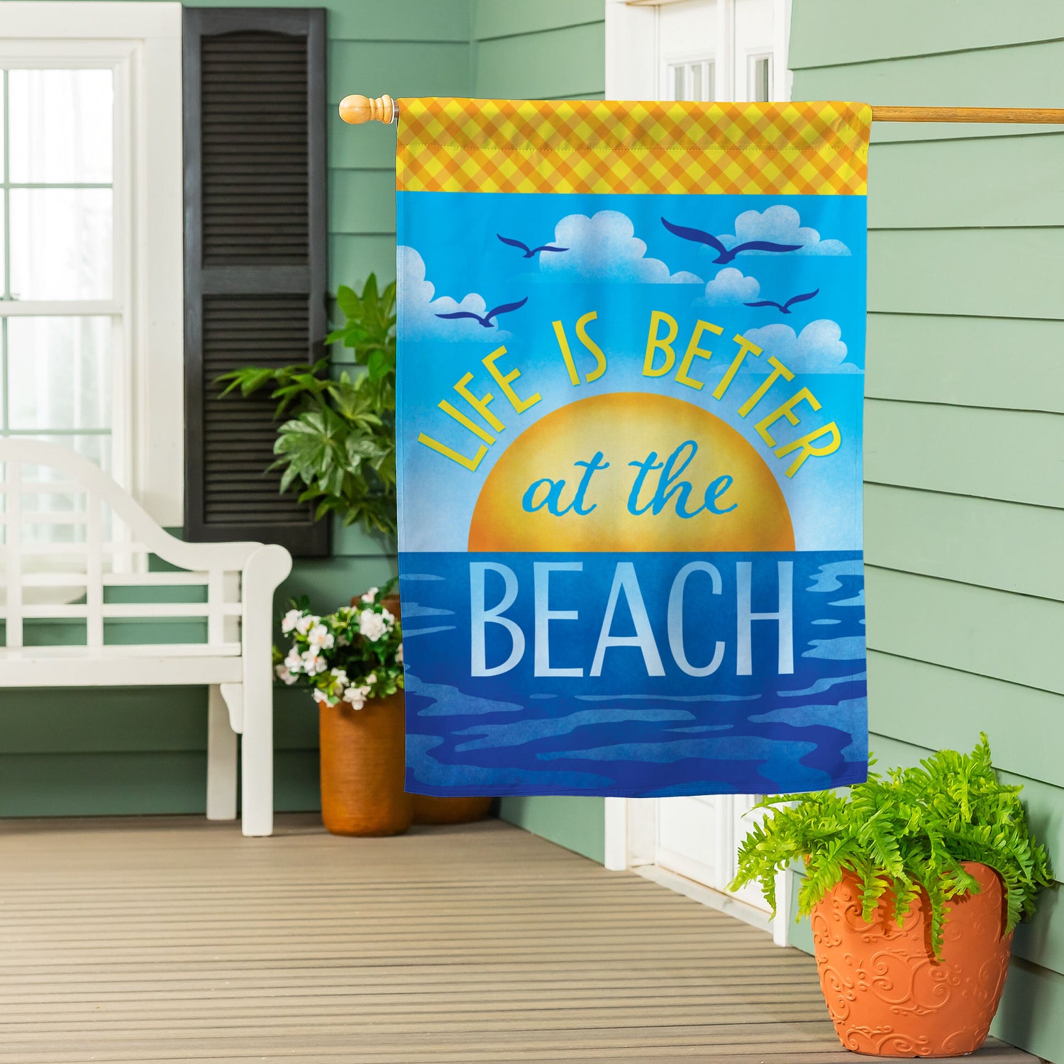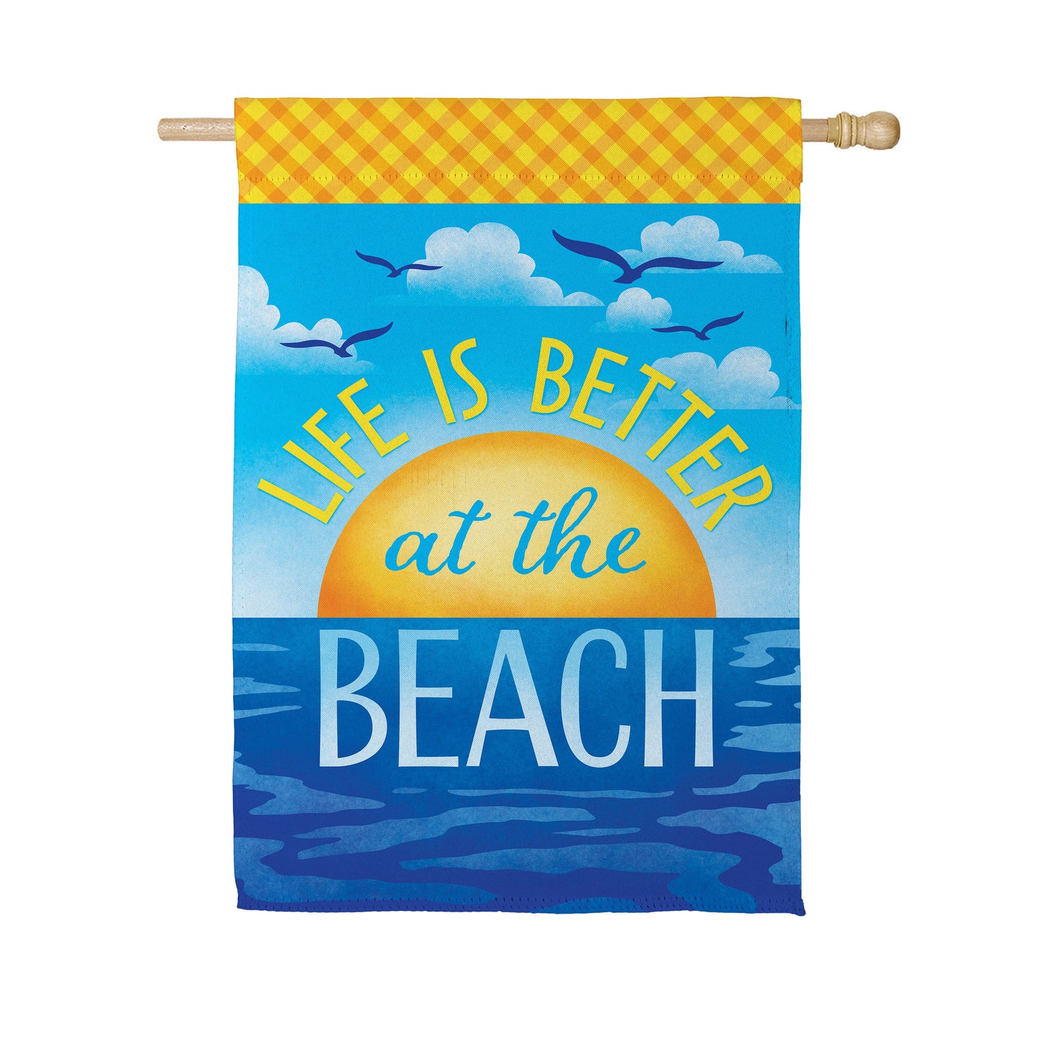 Bursting with bright colors and a detailed, lively design that adds beauty to any space, this flag is perfect for spring and beyond. Hang it in the garden to greet guests, neighbors, and friends. Flag is crafted of medium-weight suede fabric made from recycled plastic that provides a soft and durable texture. Artwork is heat transferred onto the sun-blocking material so that it is easily viewed from both sides. The weatherproof flag will not fray or fade with continued outdoor use. This flag features a sleeve for use with any standard flagpole or stand, sold separately.