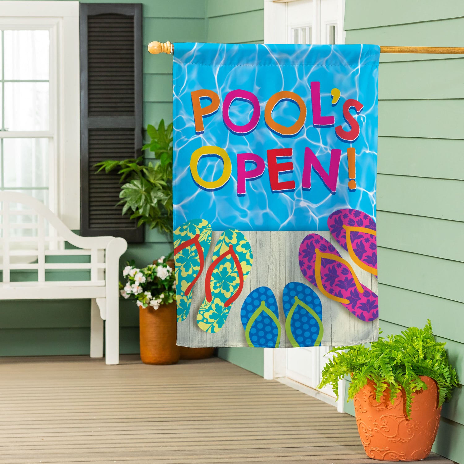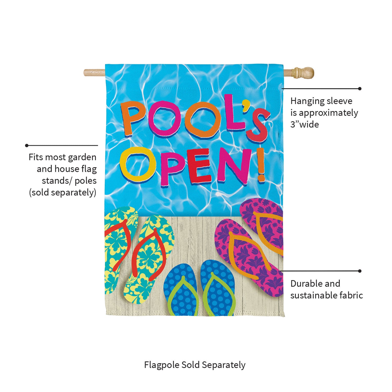 Bursting with bright colors and a detailed, lively design that adds beauty to any space, this flag is perfect for spring and beyond. Hang it in the garden to greet guests, neighbors, and friends. Flag is crafted of medium-weight suede fabric made from recycled plastic that provides a soft and durable texture. Artwork is heat transferred onto the sun-blocking material so that it is easily viewed from both sides. The weatherproof flag will not fray or fade with continued outdoor use. This flag features a sleeve for use with any standard flagpole or stand, sold separately.