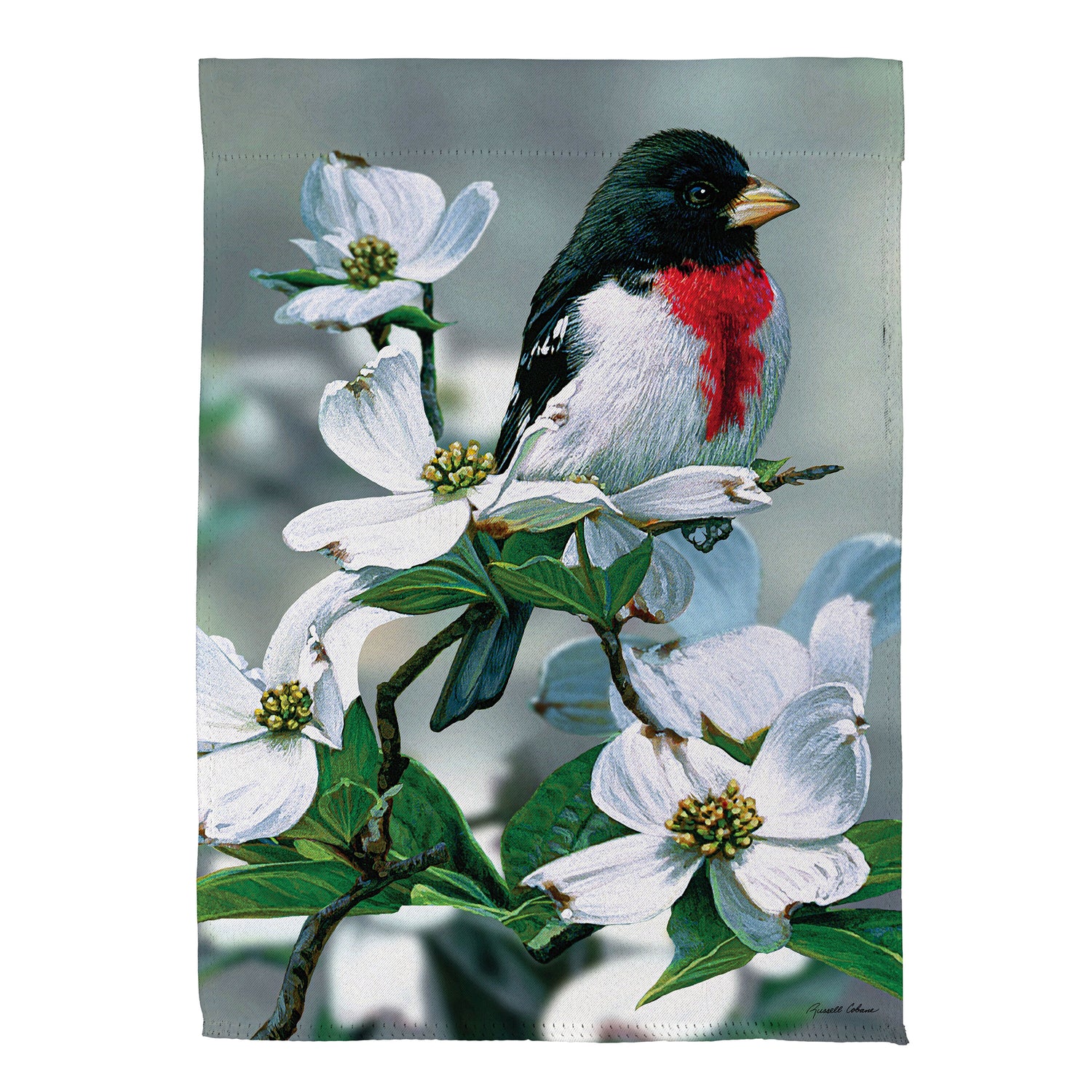 Grosbeak On Dogwood Suede House Flag