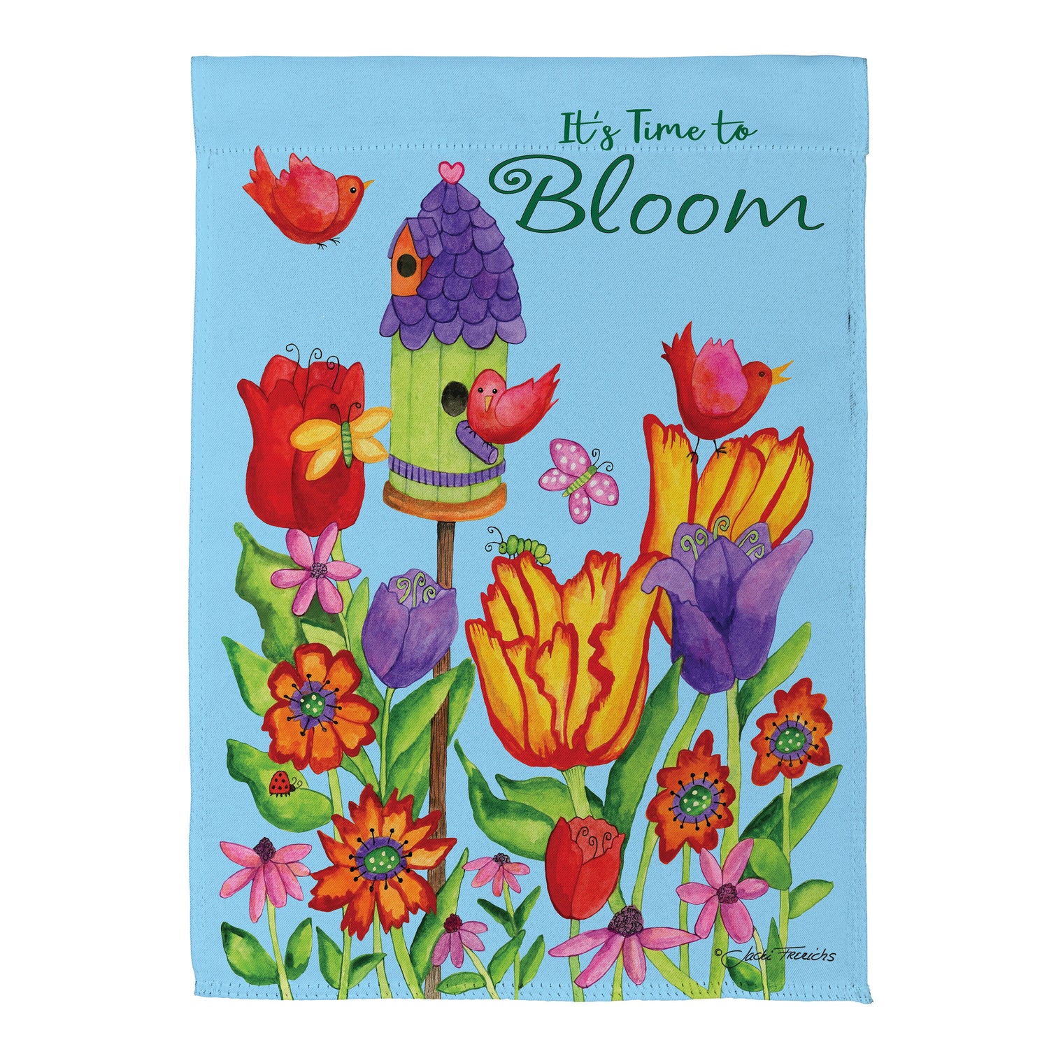 Bursting with bright colors and a detailed, lively design that adds beauty to any space, this flag is perfect for spring and beyond. Hang it in the garden to greet guests, neighbors, and friends. Flag is crafted of medium-weight suede fabric made from recycled plastic that provides a soft and durable texture. Artwork is heat transferred onto the sun-blocking material so that it is easily viewed from both sides. The weatherproof flag will not fray or fade with continued outdoor use. This flag features a sleeve for use with any standard flagpole or stand, sold separately.