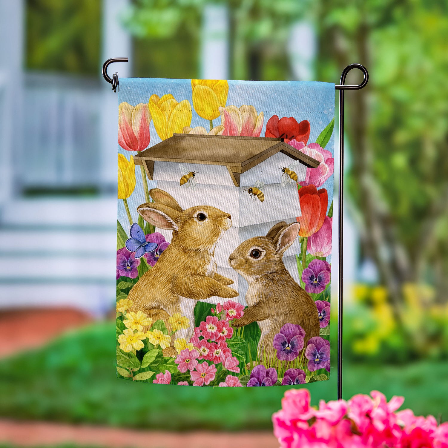 Bunny Beehive Suede Garden Flag